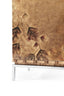 The Cabinet Autumnal Glow is a stunning addition to any home. Made with high-quality materials, this side cabinet features an Ofram veneer and lacquer finish. The rectangular glass top is overlaid with a stainless steel gallery, adding a touch of elegance to the piece. The two doors are adorned with gilt and leaf painted lacquer, and a stainless steel handle for easy opening. Inside, you'll find a sycamore veneer and lit interior with two adjustable glass shelves. The cabinet stands on a sleek stainless steel base, adding a modern touch to its design.