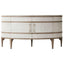 Introducing the Curved Cabinet Brandon in Champagne from House of Isabella. This luxurious piece of furniture is crafted with a bowfront design and features a stunning combination of figured ofram veneer and solid oak. The cerused mangrove finish adds a touch of elegance to the overall look. The cabinet also boasts a Komodo embossed leather panelled exterior, giving it a unique and sophisticated touch.