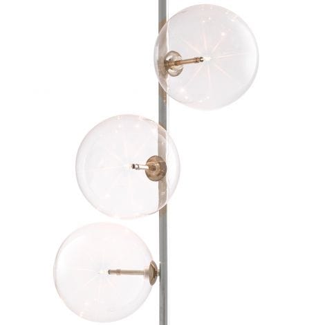 Update your living space with the unique style of the Tempo Floor Lamp. This contemporary floor lamp will give a truly modern look to your lounge or bedroom. It features 5 white glass spherical lampshades and a metal fixture with an antique brass finish and black marble cylindrical base for a striking contrast.