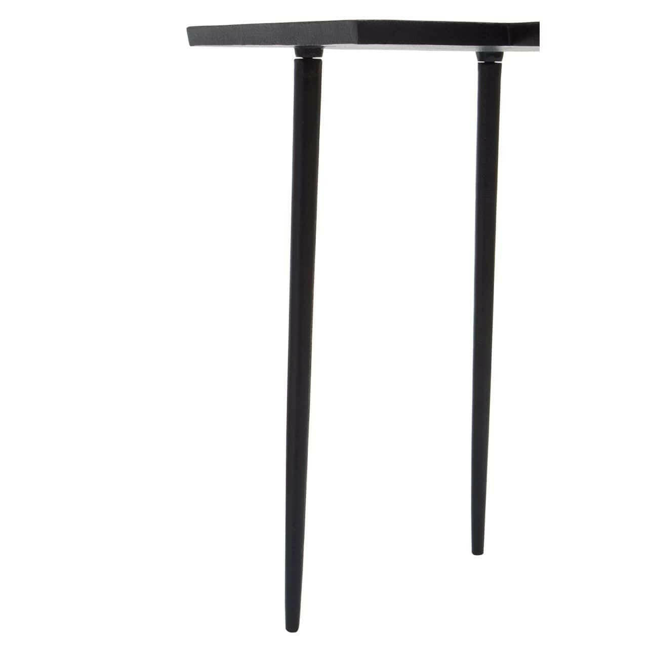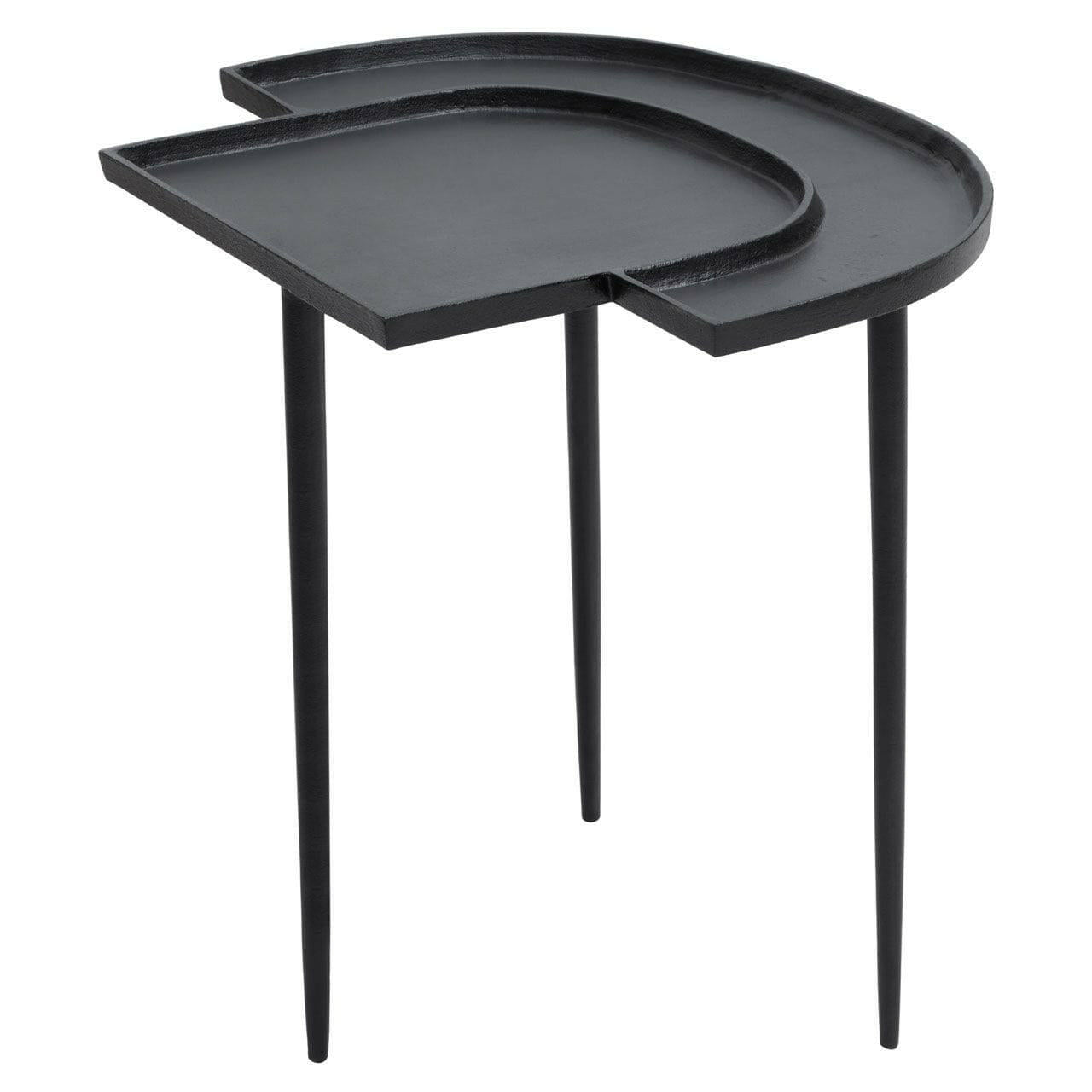 Add a modern edge to your décor with the Simbolo black nickel top side table, with black metal legs. The abstract design of this functional yet aesthetic side table will ensure to create a statement piece and add visual interest to a room.