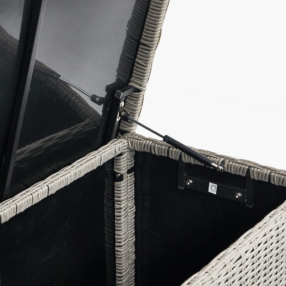Our Stone Grey Small Cushion Box K/D is the perfect addition to your outdoor space. Made from synthetic rattan, it offers the aesthetic qualities of natural rattan while being durable, weatherproof, and UV protected. The powder-coated aluminium frame adds a high-quality finish, ensuring that this piece is strong and long-lasting. With its spacious dimensions of W137 x D56 x H64cm, this cushion box will keep your cushions protected all year long. Plus, with fast and free delivery within the UK, it's a must-have for any garden. Available in Slate Grey and Dove Grey. Basic assembly required. Order the cushion bag separately using code: 18-C-7901.
