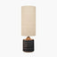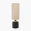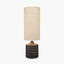 This distinctive antique black wash, mango wood table lamp adds texture with its use of natural wood grain, natural linen and carving pattern. The striking elegant tall lampshade in a neutral palette complements the natural base material and adds a cosy soft lighting ambience. Handmade in India, the Alaric table lamp complements any Scandi-inspired space.