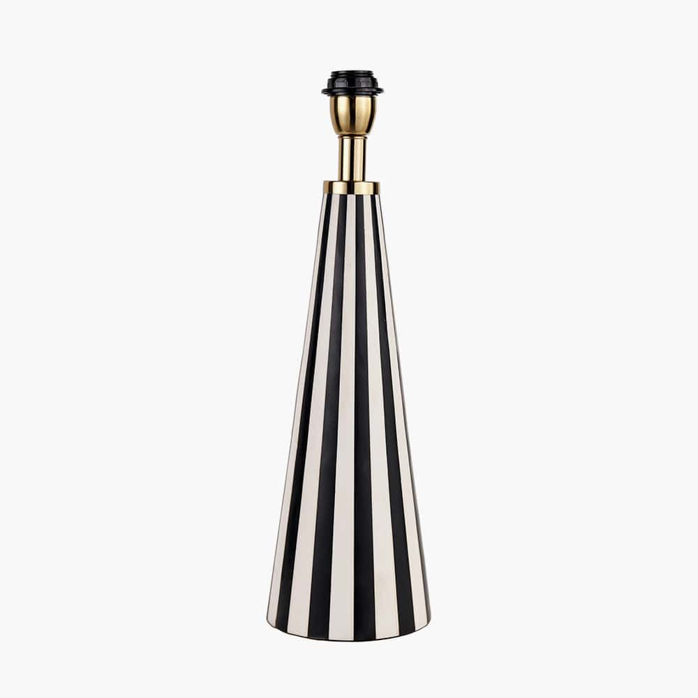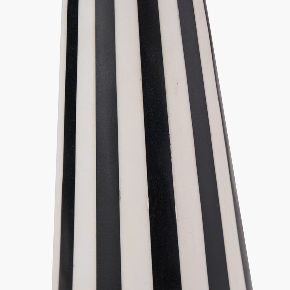 This stripe table lamp is a perfect addition for any modern decor. It's made of black and white resin strips, fashioned into a sleek conical shape. The eye catching base is teamed with a black cotton mix lamp shade to complete the look.