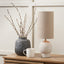 This sandstone table lamp makes use of simple curves and subtle texturing. Topped with a strikingly elegant tall linen lampshade and neutral colour palette will add a soft calming ambience to your room. Handmade in India the Althea table lamp complements any Scandi-inspired space.
