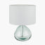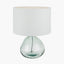 Our stunning Alvira recycled glass table lamp is a light and airy addition to your room. The organically shaped table lamp comes styled with a modern white cylinder linen lamp shade. This neutral lamp shade is self-lined which allows the light to shine through the open weave, creating a warm glow throughout your interior.