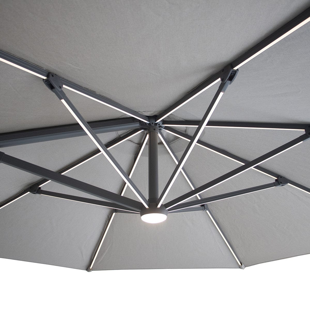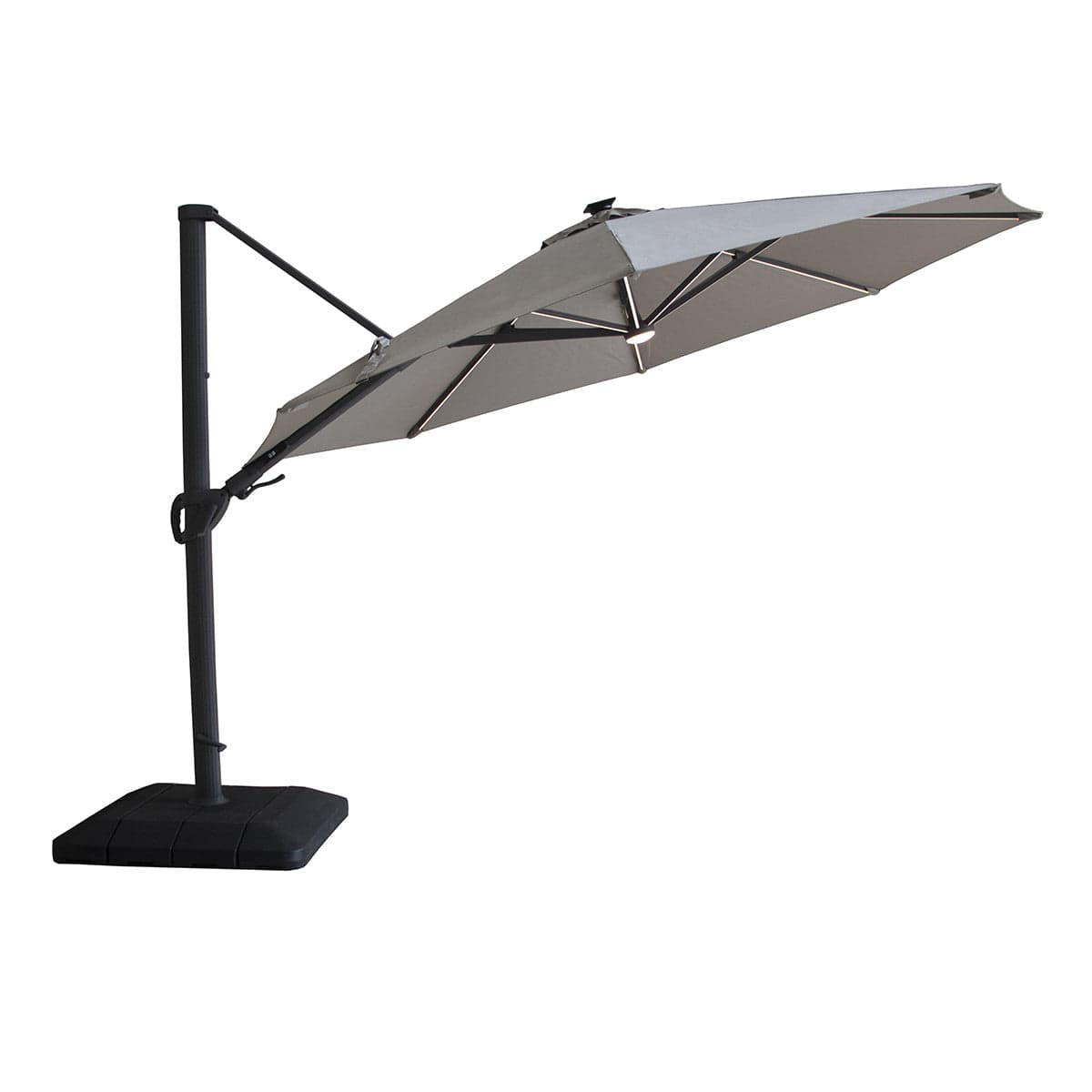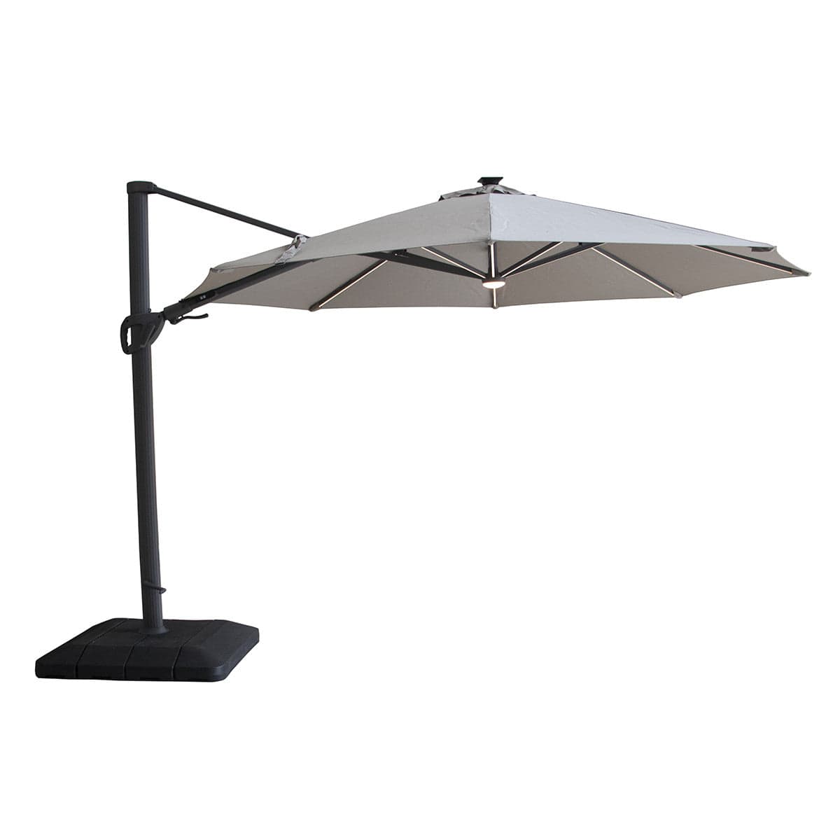 Aramis LED 3.5m Round Rotating Cantilever Parasol With Base - White Pepper Beige