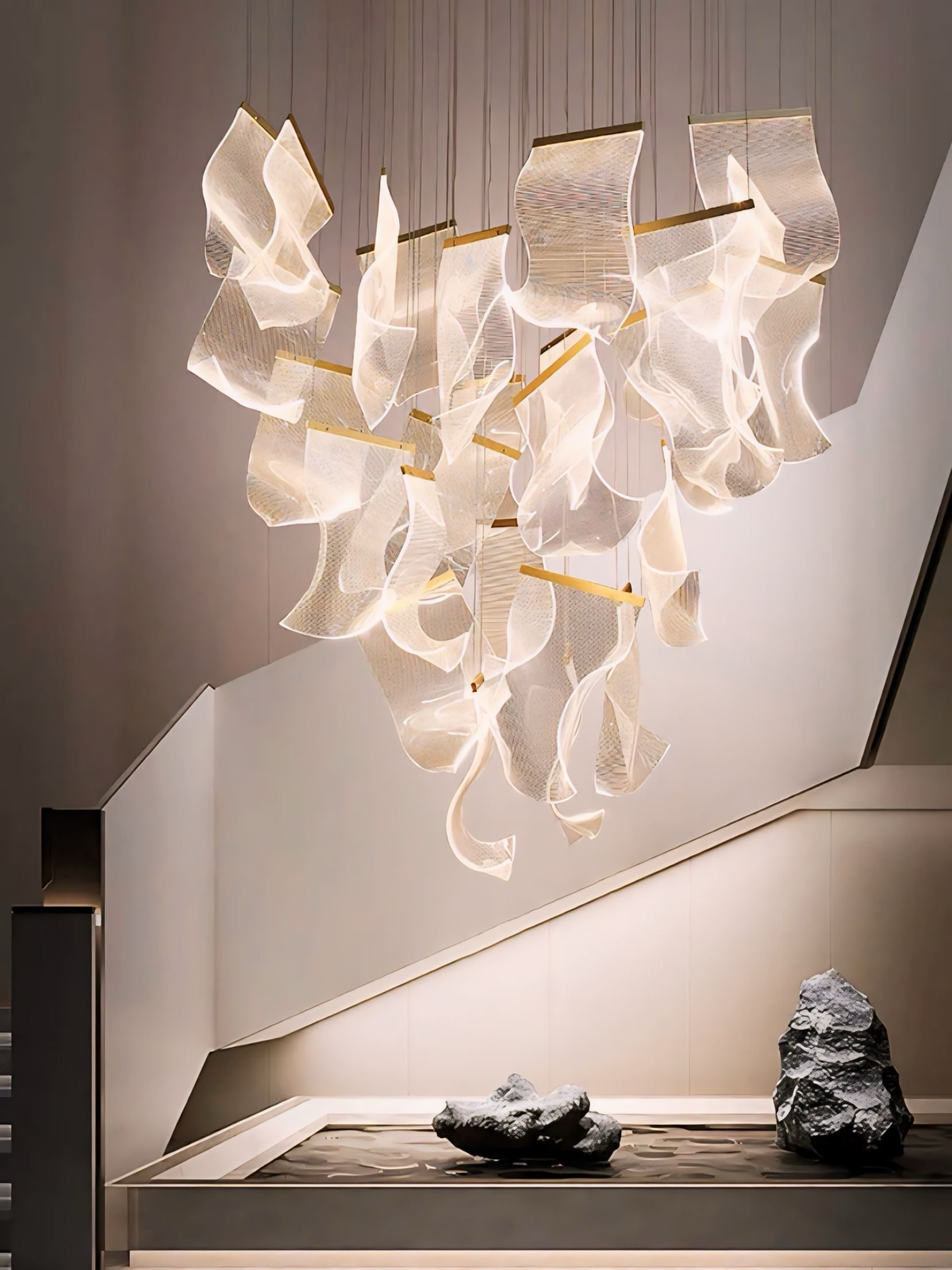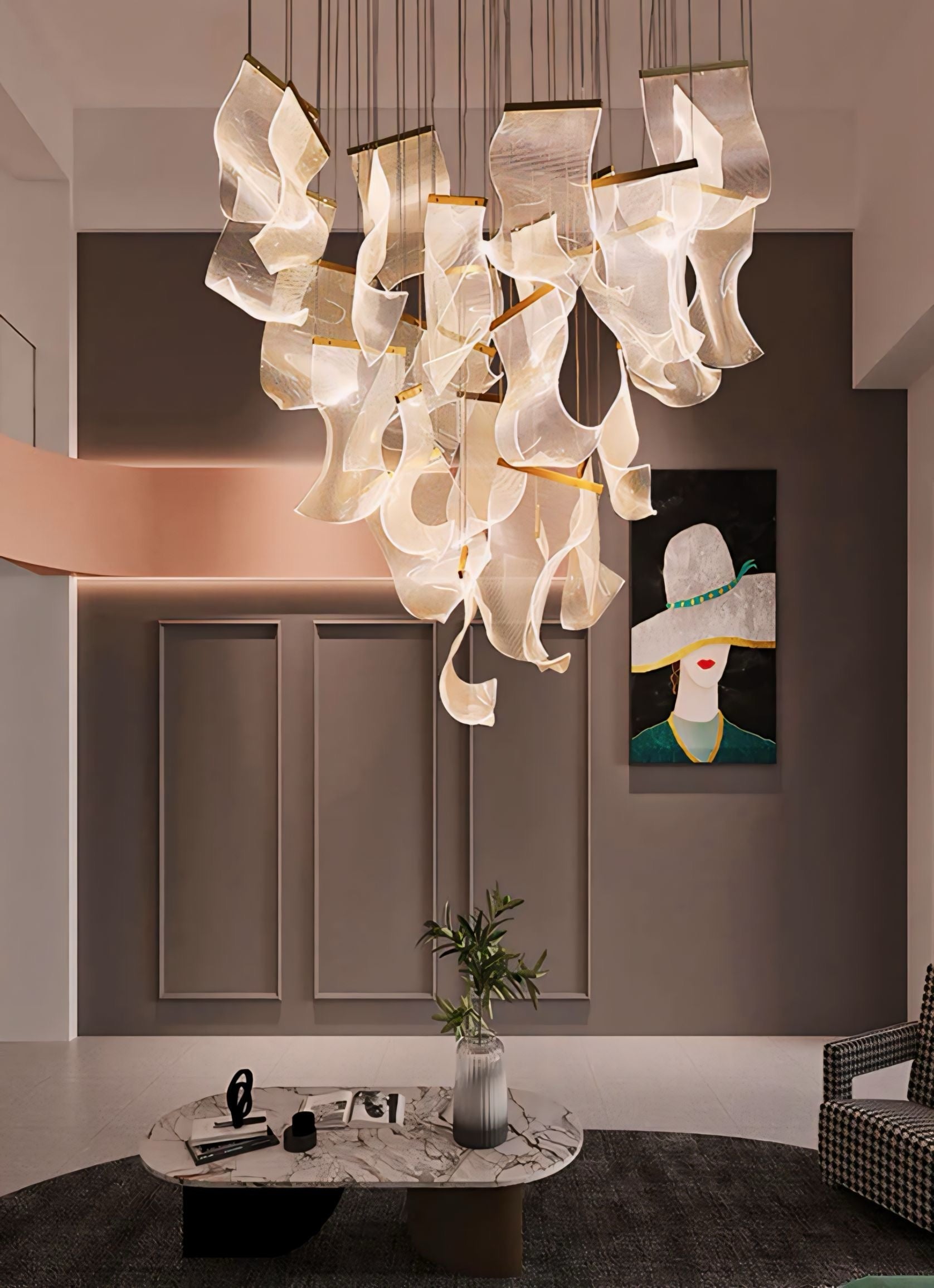 Transform your space with our breathtaking modern Atsushi Light, these artistic light fixtures feature intricate, flowing designs that create a stunning visual centrepiece in any room. Perfect for contemporary settings, their luminous, sculptural forms add a touch of elegance and sophistication. Ideal for living rooms, dining areas, or grand entryways, these chandeliers elevate your decor with their unique blend of form and function.