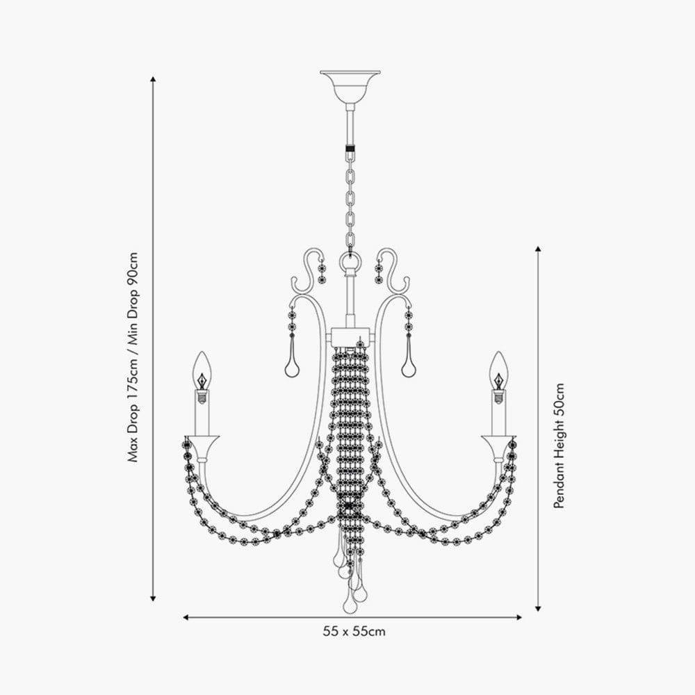 Our Belle Antique Silver Leaf & Metal Beaded 5 Light Chandelier Pendant, is a visual beauty. With its classic shape and modern finish, this is a statement light piece that will wow from every angle. Working with an SES/E14 Candle shaped light, this light is exactly what you need to create a focal point in any space.