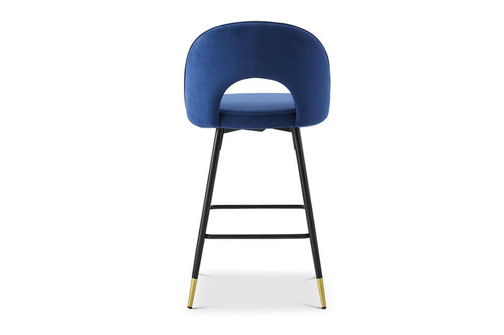The Berkeley Hoxton Bar Stool in Blue is the perfect addition to any home or interior design project. Upholstered in a luxurious matte velvet fabric, this bar stool exudes elegance and sophistication. The black legs with gold cups add a touch of glamour to the overall design.