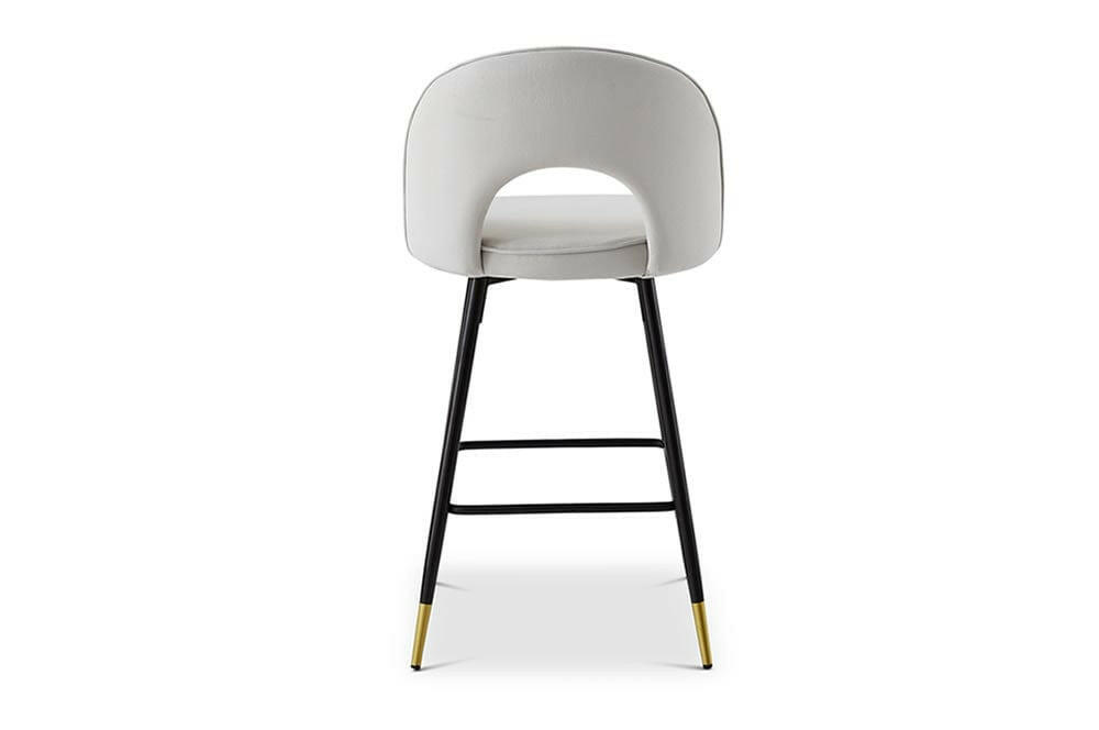 The Berkeley Hoxton Bar Stool in Light Grey is the perfect addition to any home or interior design project. Upholstered in a luxurious matte velvet fabric, this bar stool exudes elegance and sophistication. The black legs with gold cups add a touch of glamour to the overall design.