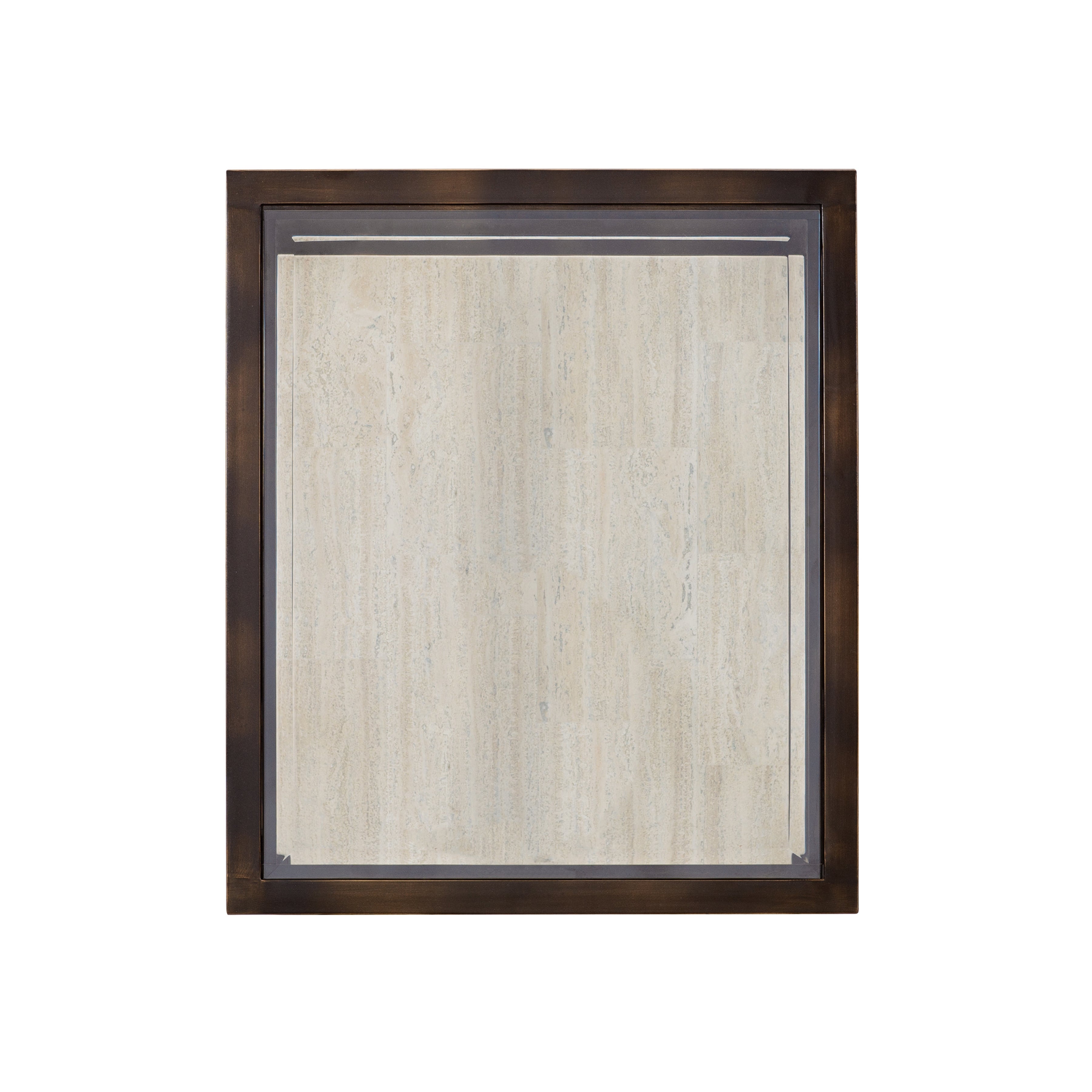 Bernhardt Occasional offers a wide range of upscale designs for luxe living spaces. The Kinsley end table makes a bold statement with a streamlined rectangular frame constructed from bronze-finished tubular steel. The white travertine bottom shelf perfectly complements the bronze tempered glass top for a dimensional and balanced effect.
