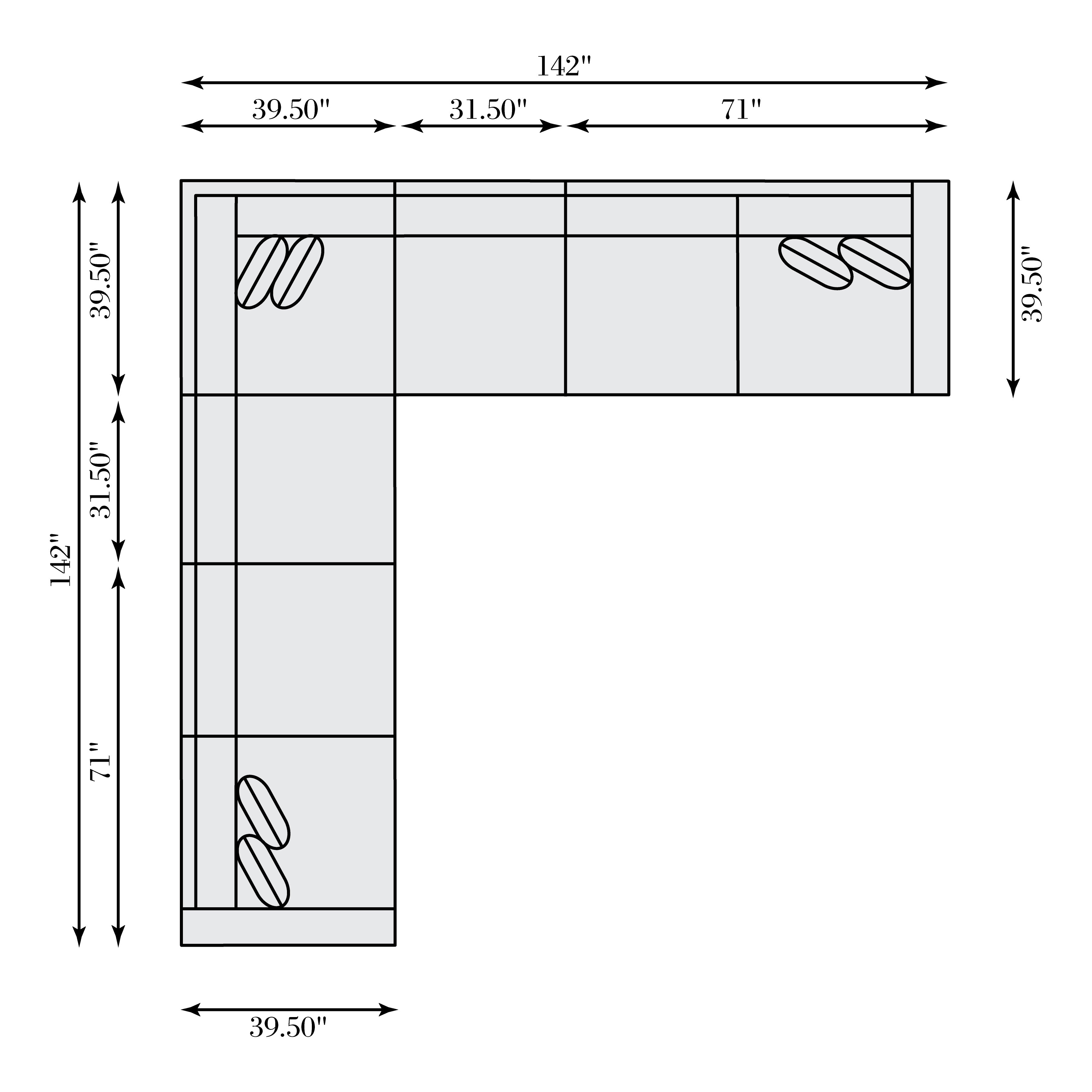 Straight lines are softened with gentle curves on the Lars sectional, complementing the wide track arms and bold silhouette. Plushly deep seat cushions and box-edge weltless bordered back pillows craft a comfort destination. Wide block feet take a stance in textured wood.