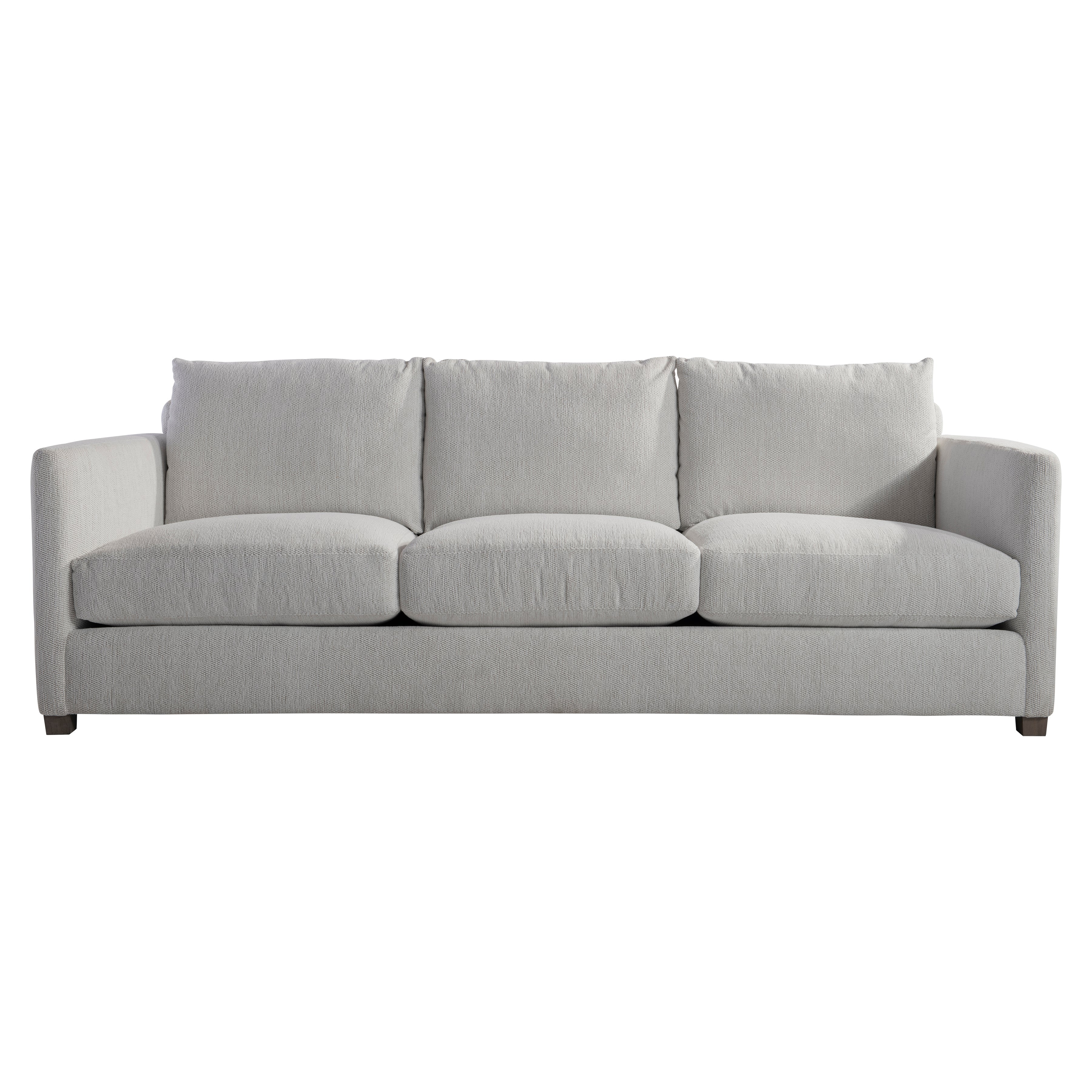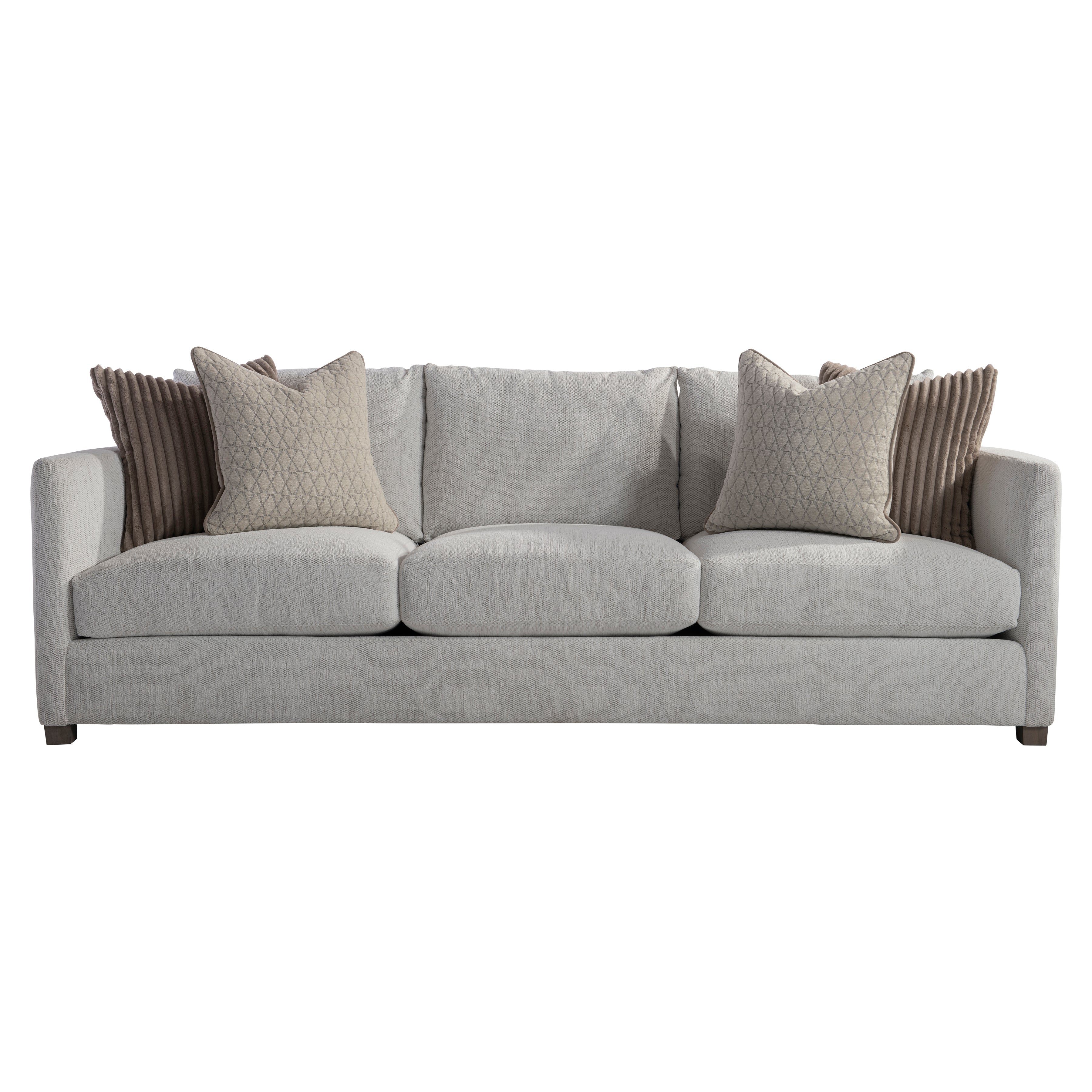 The Rory sofa showcases modern comfort in a pared-down style. Lightly padded, angled panels act as a stylish connector to the back and arms. Deep cushions, knife-edge back pillows and curated throw pillows offer a relaxing seat.