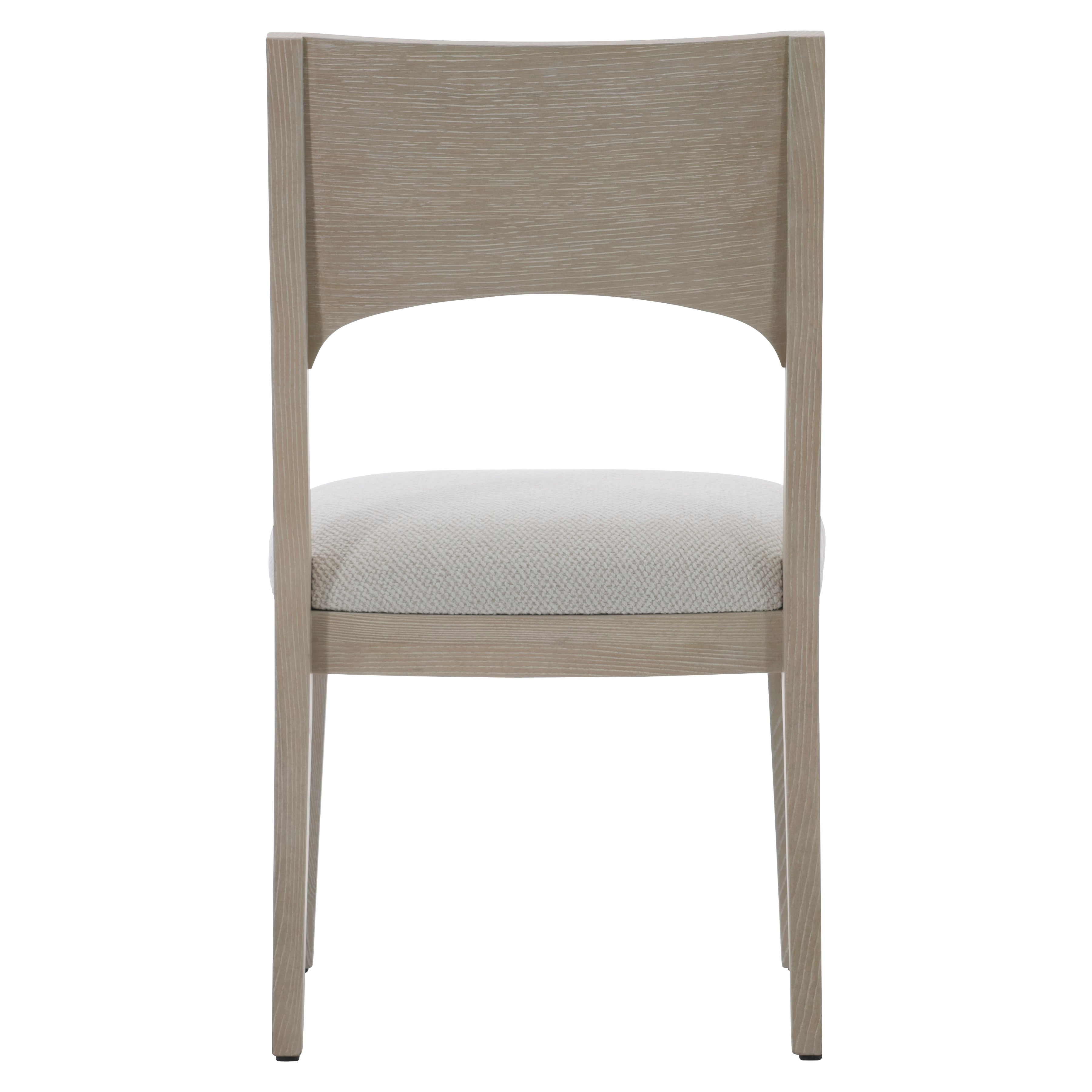 The unadorned profile of the Solaria side chair allows the flawless craftsmanship to be highlighted. A lovely arched back is created from quartered white oak veneers, while the frame is quartered ash solids, both with a Dune finish. An upholstered seat offers comfort while maintaining the quiet nature of the design.