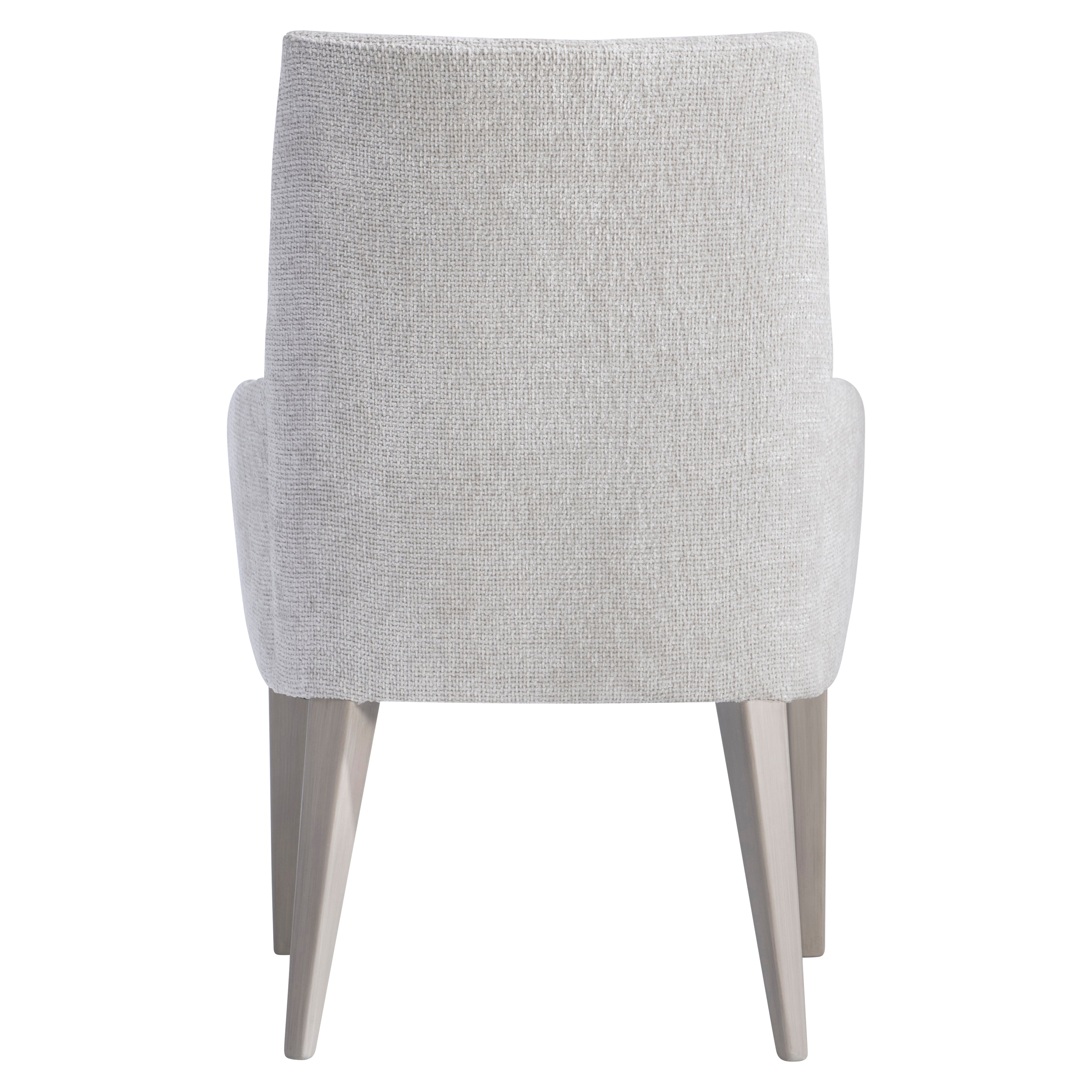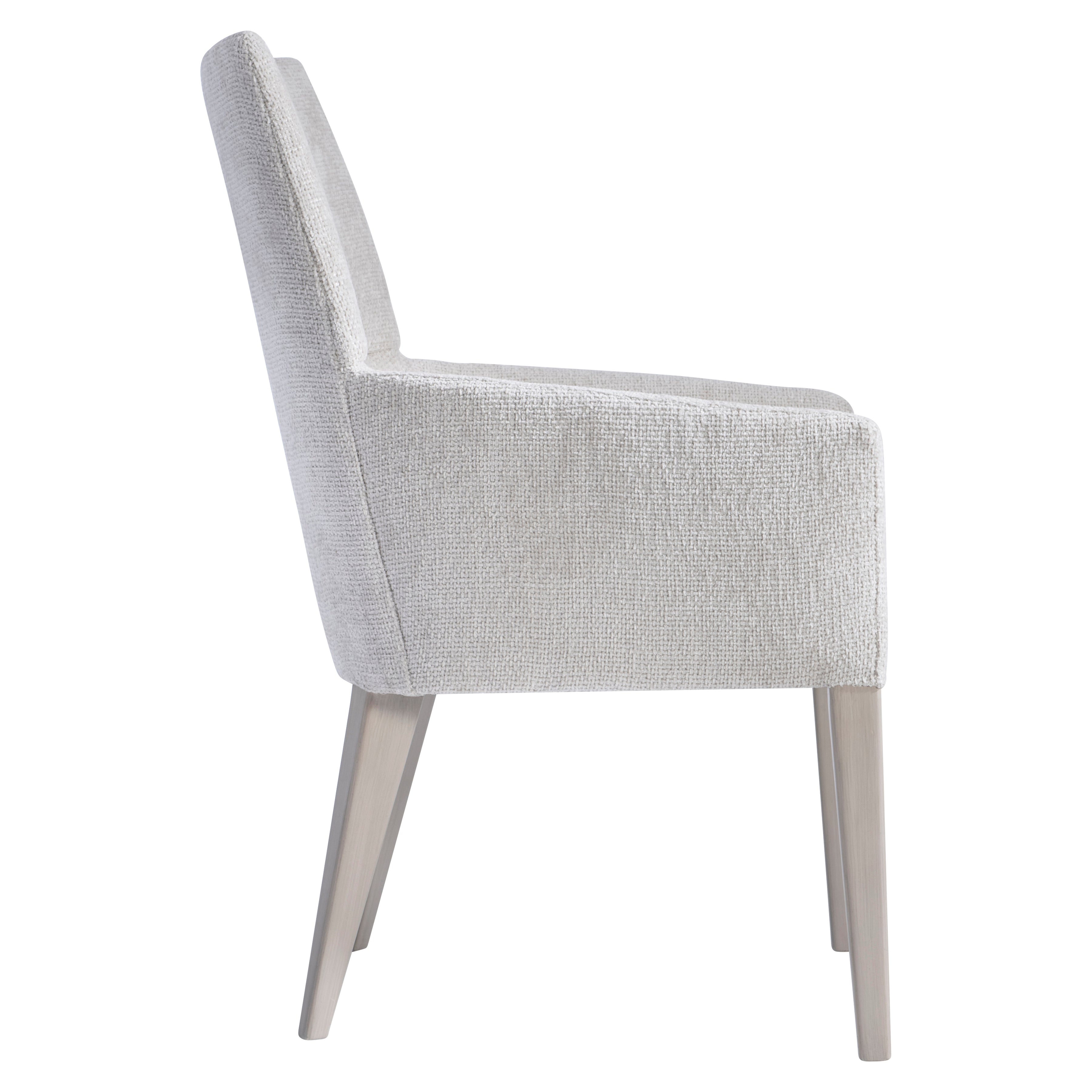 The Stratum arm chair takes straight lines and slight curves and gives them a sleek sophistication. A softly curved back is complemented by arms that curve outward. Exposed wooden legs, finished in Mist, support the fully upholstered seat.