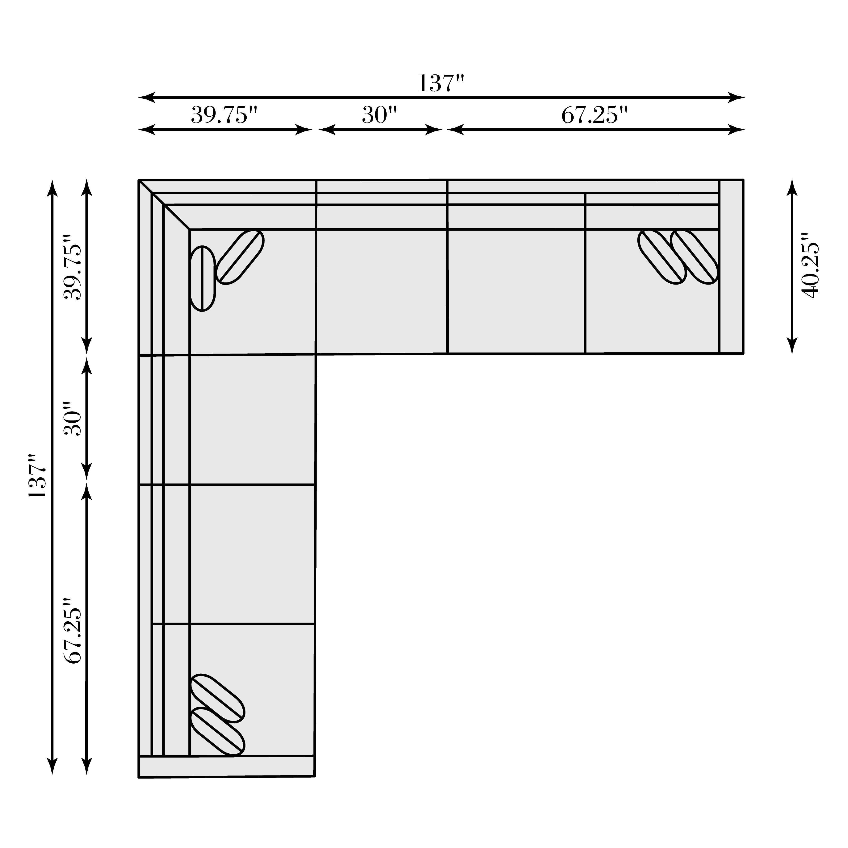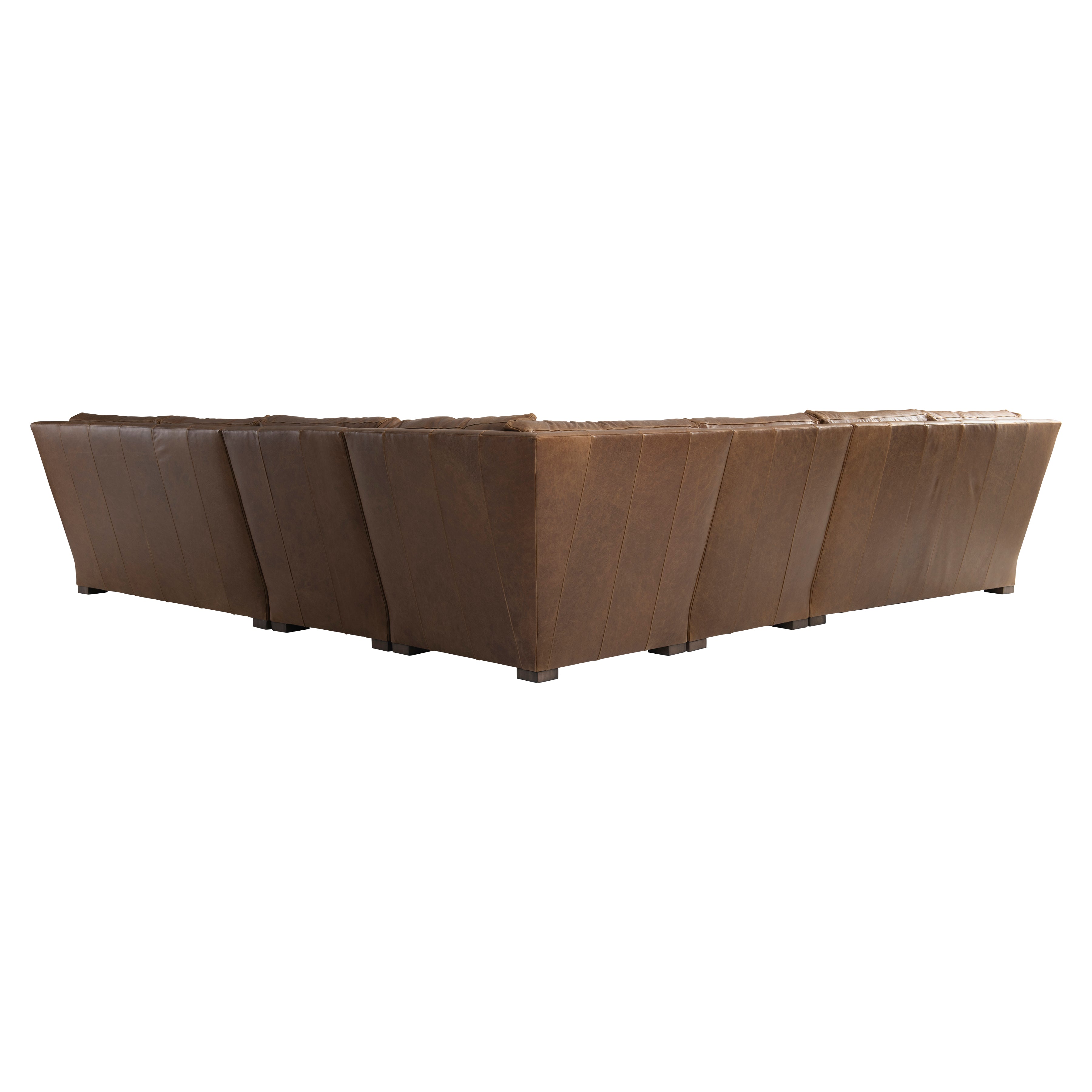 Clean lines and graceful curves blend modern and traditional shaping for the Ventura sectional. The arms gently sweep from a tall back and then take a straight line to the floor. Deep seat cushions and box-edge bordered back pillows provide the ultimate in comfort.
