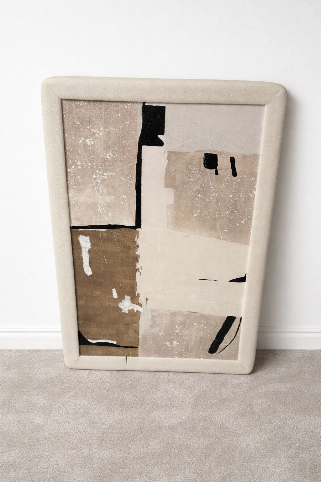 “Blank Spaces” is a captivating pair of hand-painted oil artworks that bring contemporary sophistication and serene elegance to any space. Each piece is framed in a sleek black frame, providing a striking contrast that highlights the earthy tones and intricate textures of the paintings. The abstract composition and harmonious colour palette evoke a sense of calm and contemplation, making them perfect for living rooms, offices, or gallery-style displays. Designed to complement modern and timeless interiors, this pair of artworks creates a cohesive and visually engaging statement.