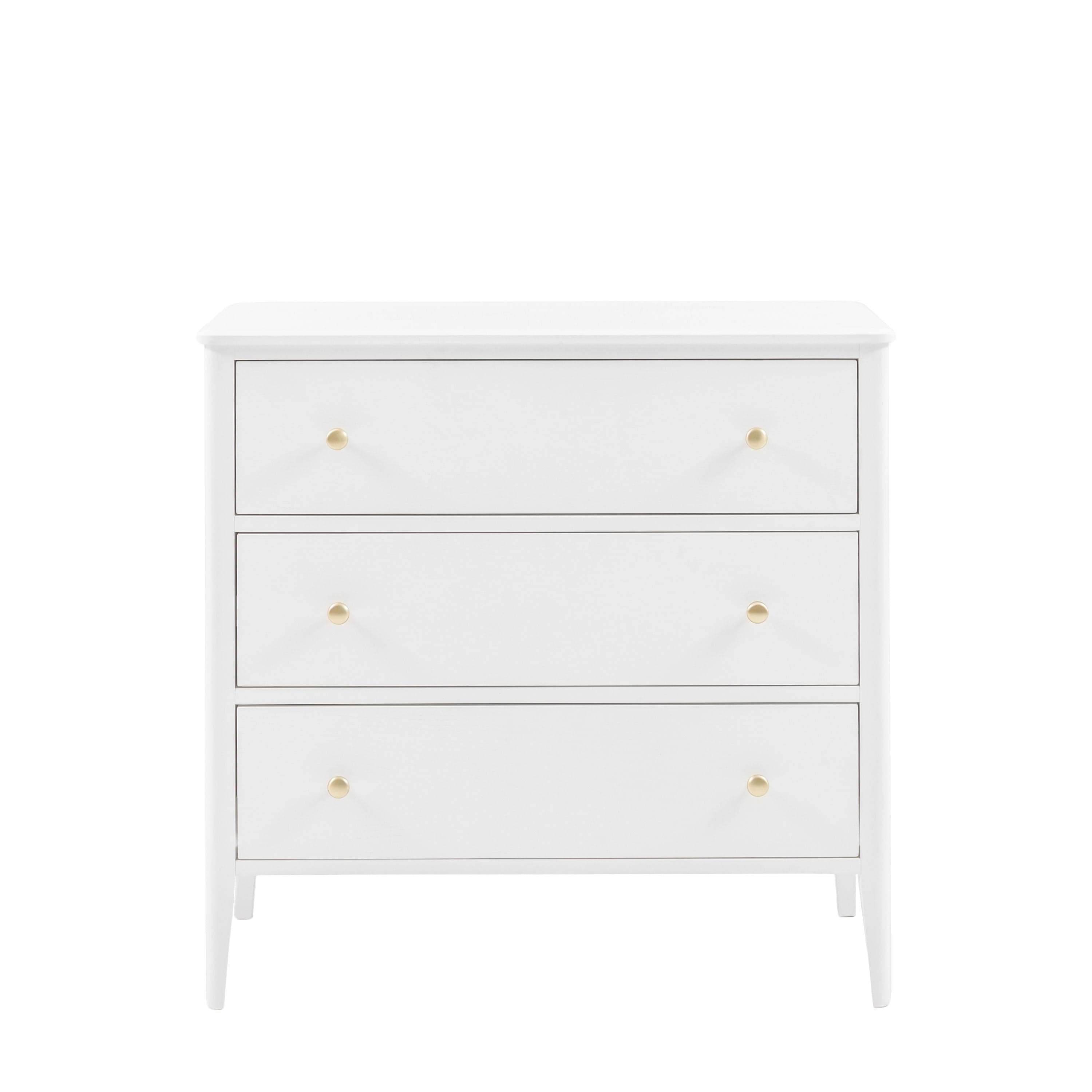 Organise any space with this elegant 3 drawer chest. Featuring three generous drawers, this chest offers ample storage while adding sophisticated style to a room. The chic white finish is beautifully complemented by gold handles, bringing a touch of modern luxe to a bedroom, dressing room, or living area.