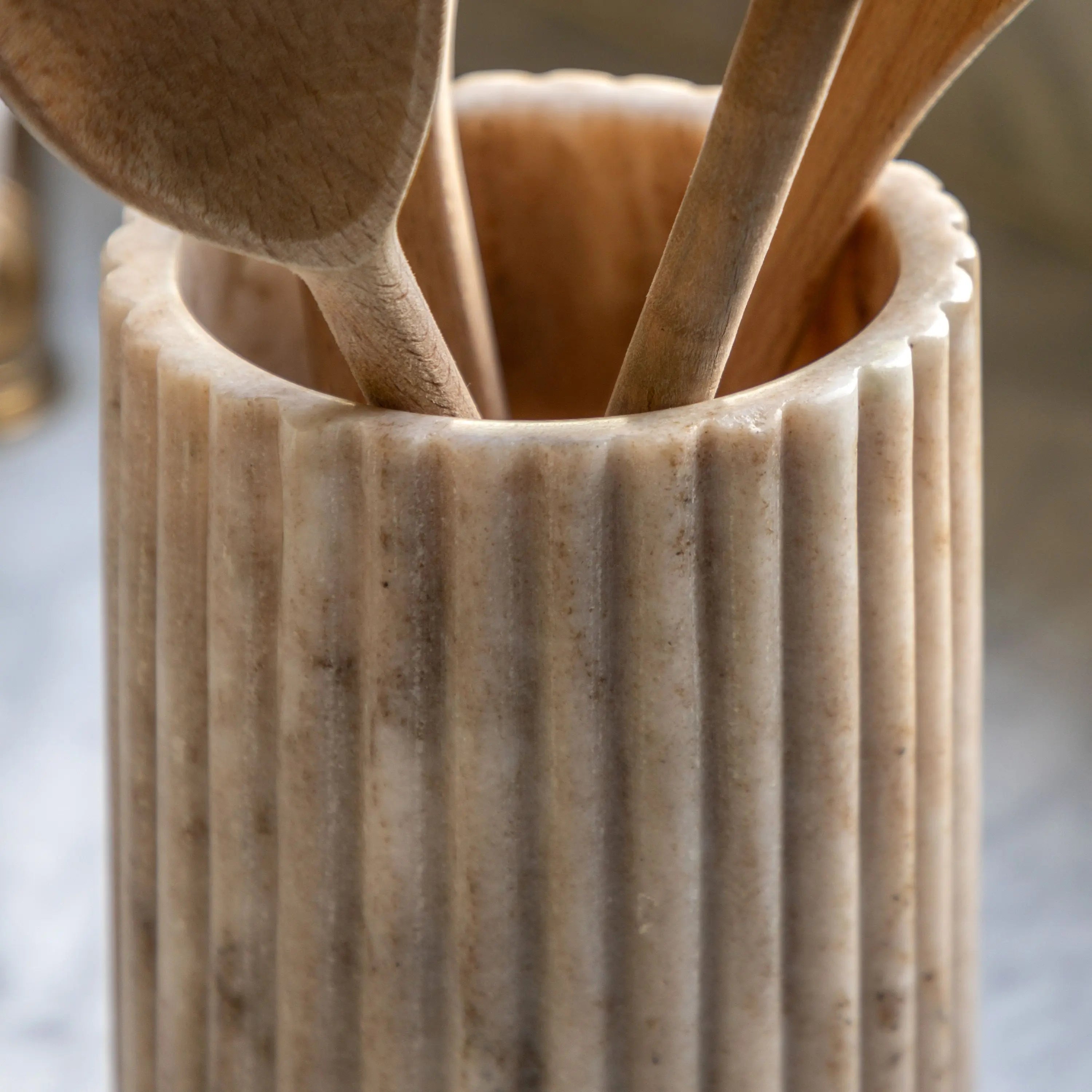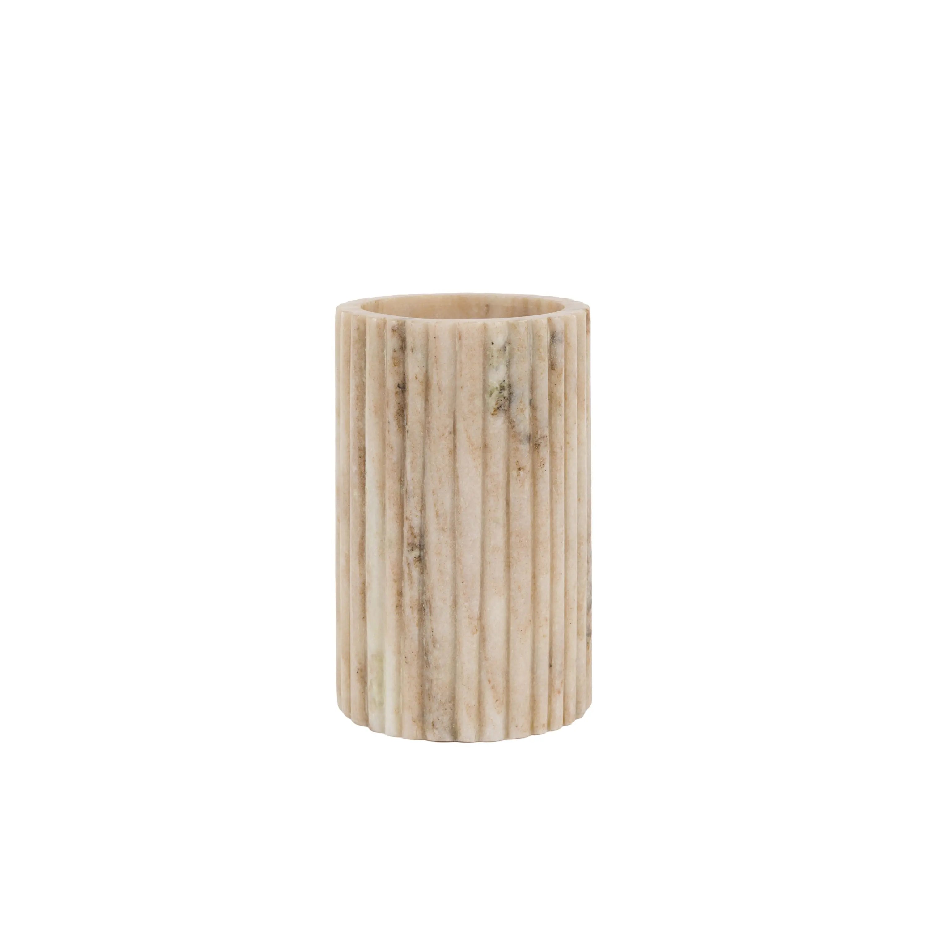 Keep your wine chilled and add an elegant touch to your next dinner party with this marble wine cooler. Hand carved in natural beige marble, the ribbed design showcases the stunning natural veins and colouration of the stone. Marble retains a chilled temperature longer, keeping your wine cooler and letting you enjoy your evening. For added long lasting chill, pre-chill your wine cooler in the fridge or freezer before use.