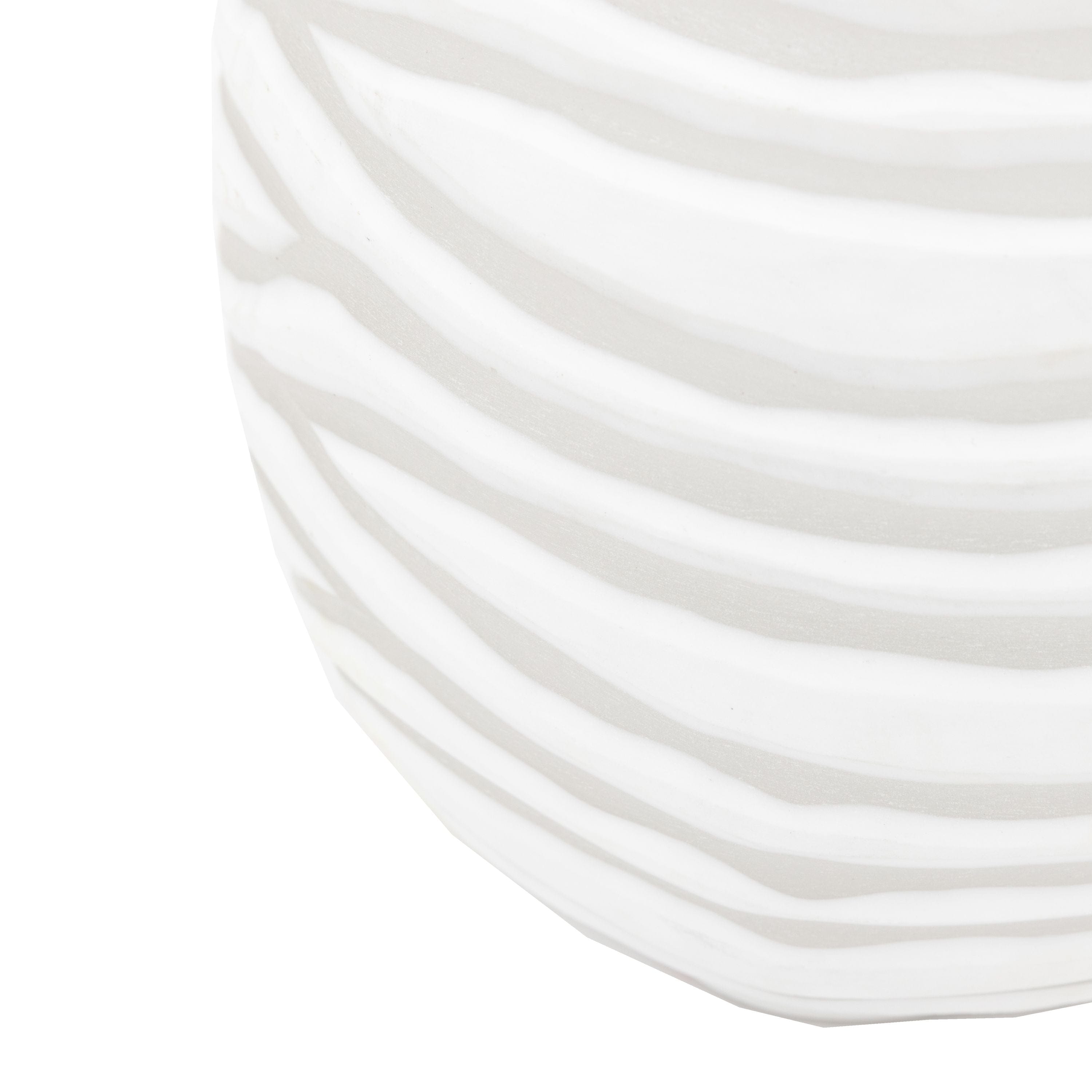 Anclo Handblown Carved Glass Vase White Small is a stunning addition to any room. This heavy white glass vase is hand blown with intricate detail, making it a unique and elegant piece. When placed against a window or other light source, the hand carved freeform stripes and organic shape come to life, adding a natural touch to your decor.