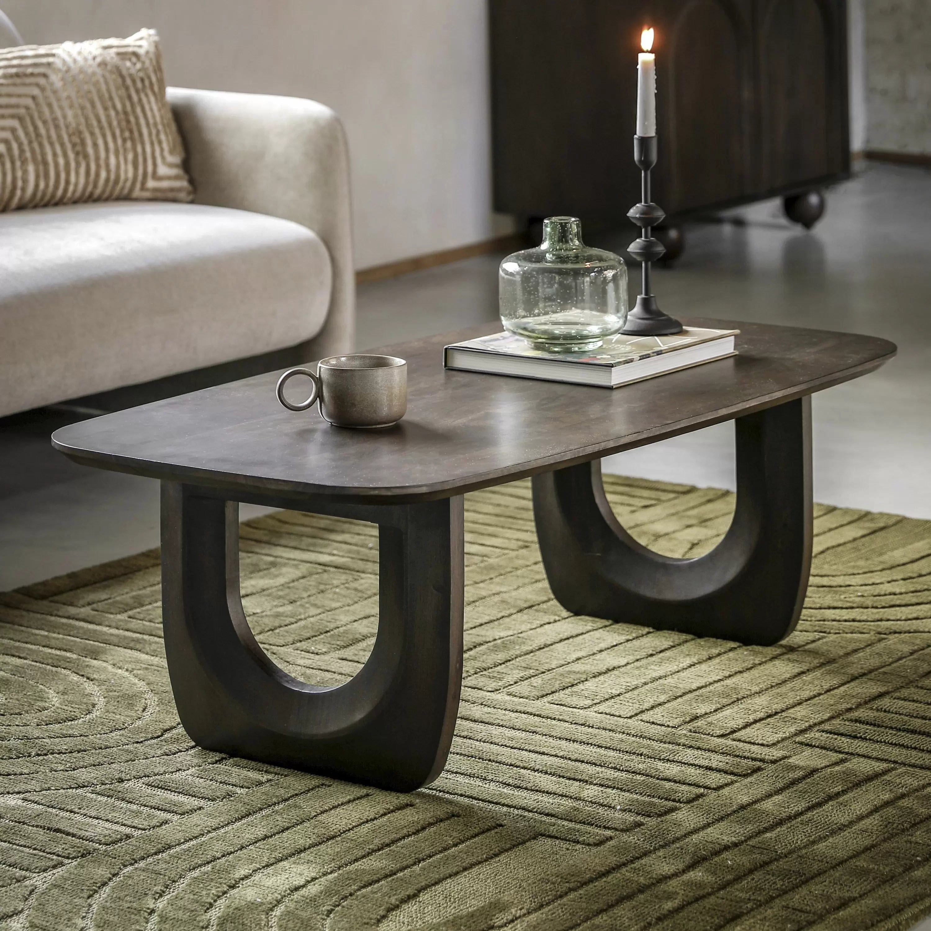 Add a bit of retro style to your living room with this bold on trend 70s influenced coffee table. Made with Mango wood stained to a deep dark colour to show off the rich grains it's the carved U shaped legs on this table that really grab your attention. Coordinating further pieces also available.