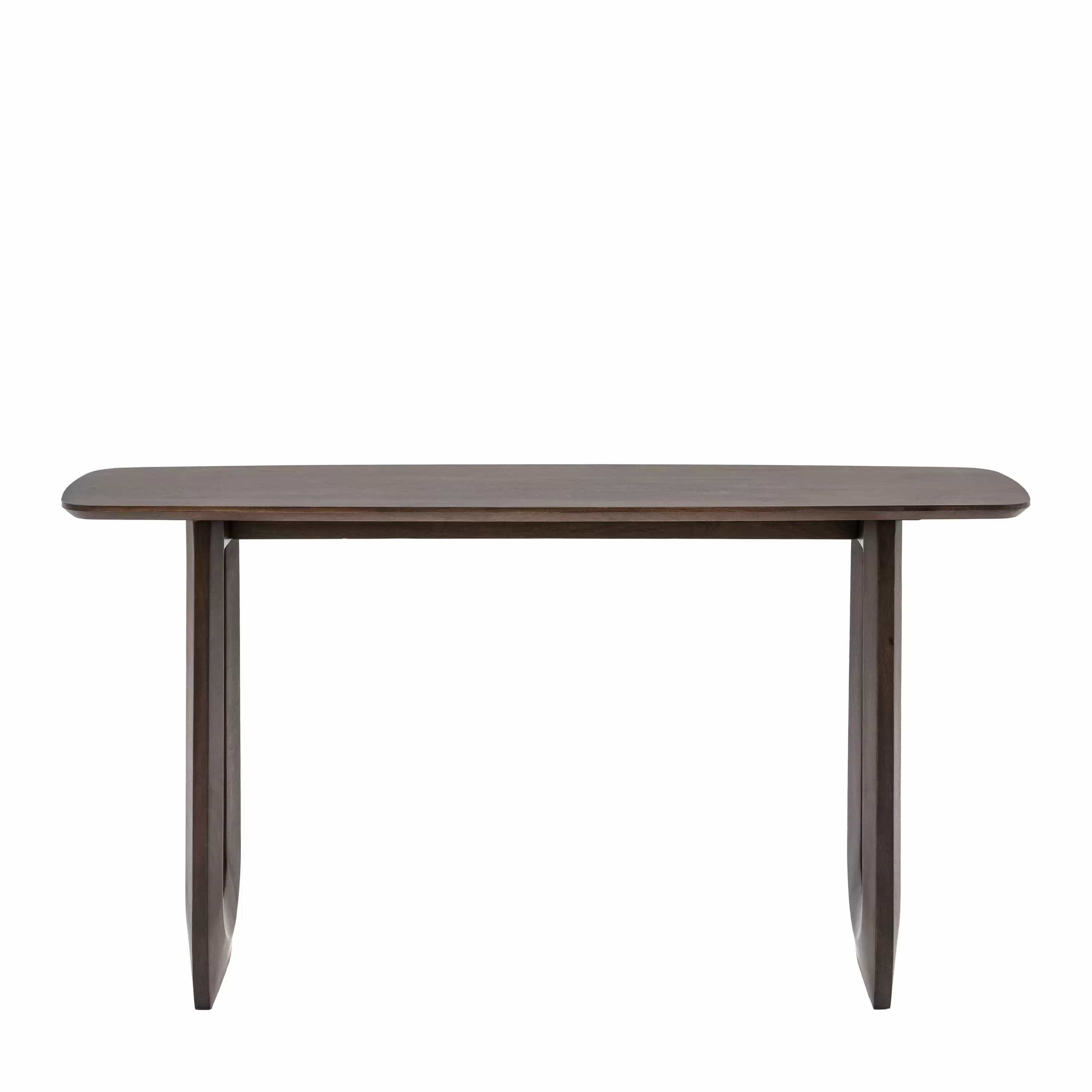 Make a style statement with this bold and beautiful 70s influenced console table. Perfect as either a slim desk or a console table, the dark stained Mango wood is full of rich grains while the eye caching carved U shaped legs add the final touch of retro cool. Coordinating further pieces also available.
