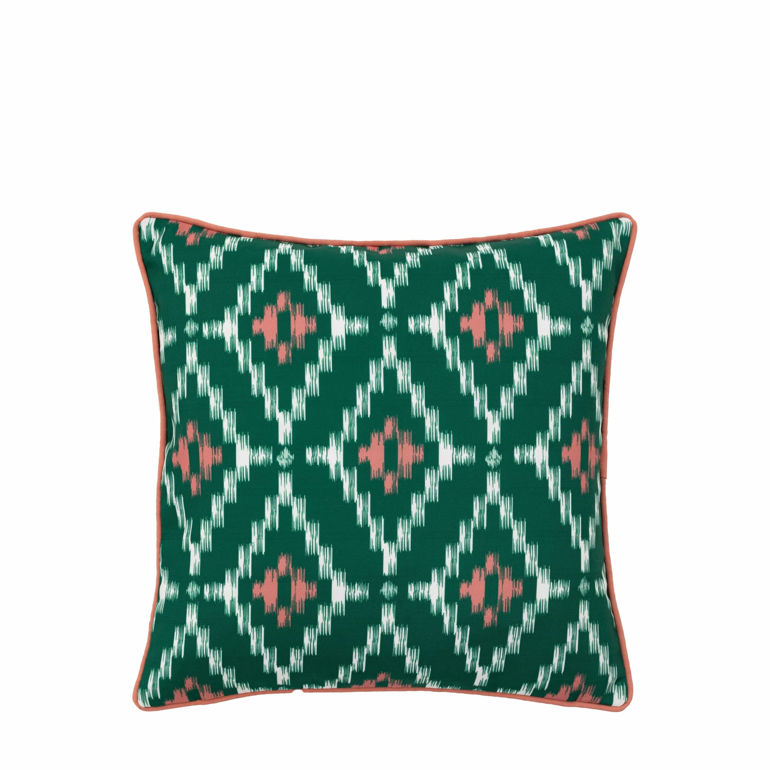 Perfect for adding the wow factor to your space inside or out. This cushions striking coral & green geometric pattern and showerproof fabric make it a must have addition to your space, wherever that is.