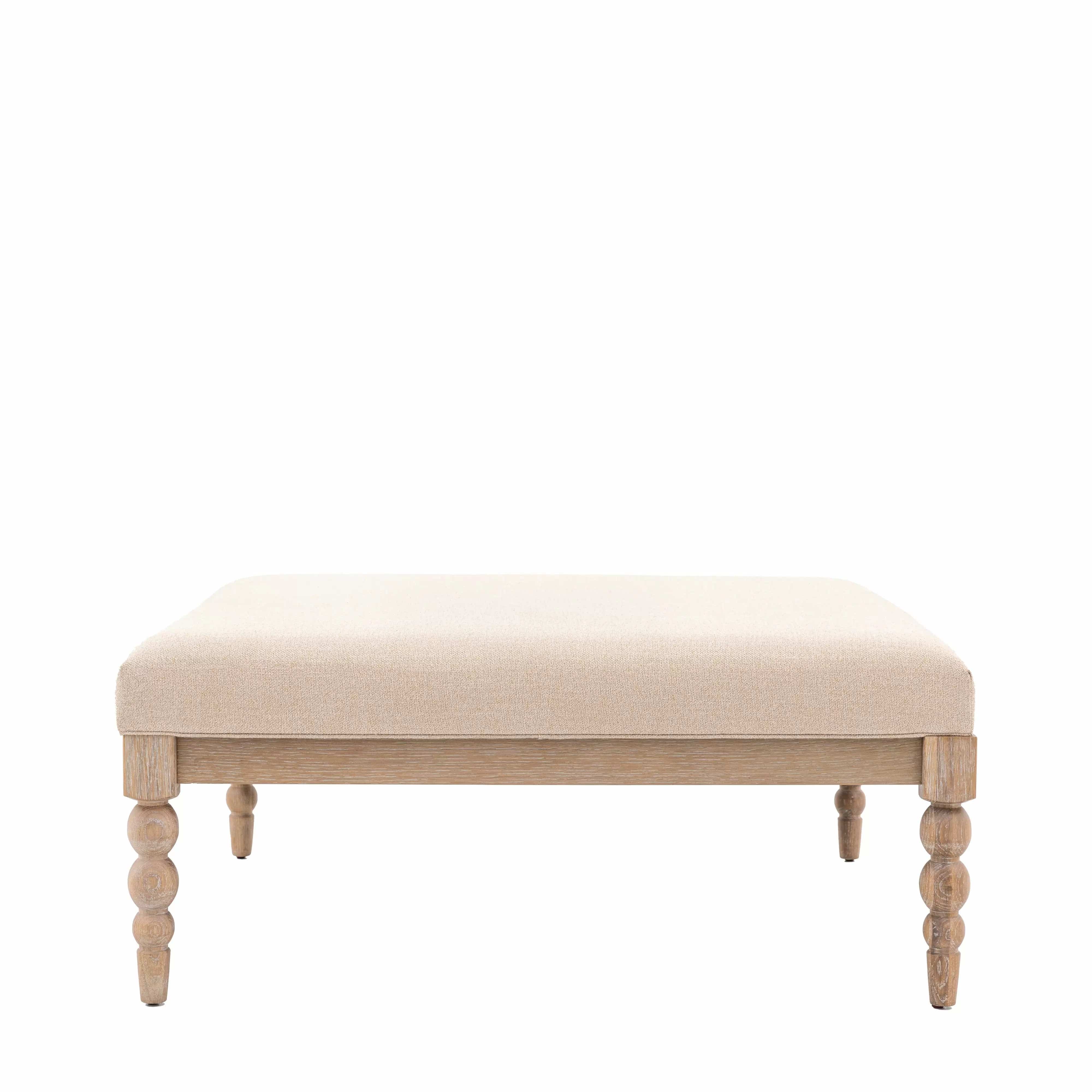 Introducing the Mitcham Coffee Table, a stunning addition to any living space. This 1000x400x1000mm table features eye-catching legs with hand-crafted bobbing detail, created by the finest craftsmen. Made from oak with a subtle lime wash finish, this table exudes a soft and mellow vibe. The upholstered seat in biscuit colour adds a touch of elegance. Complete the look with matching pieces available.