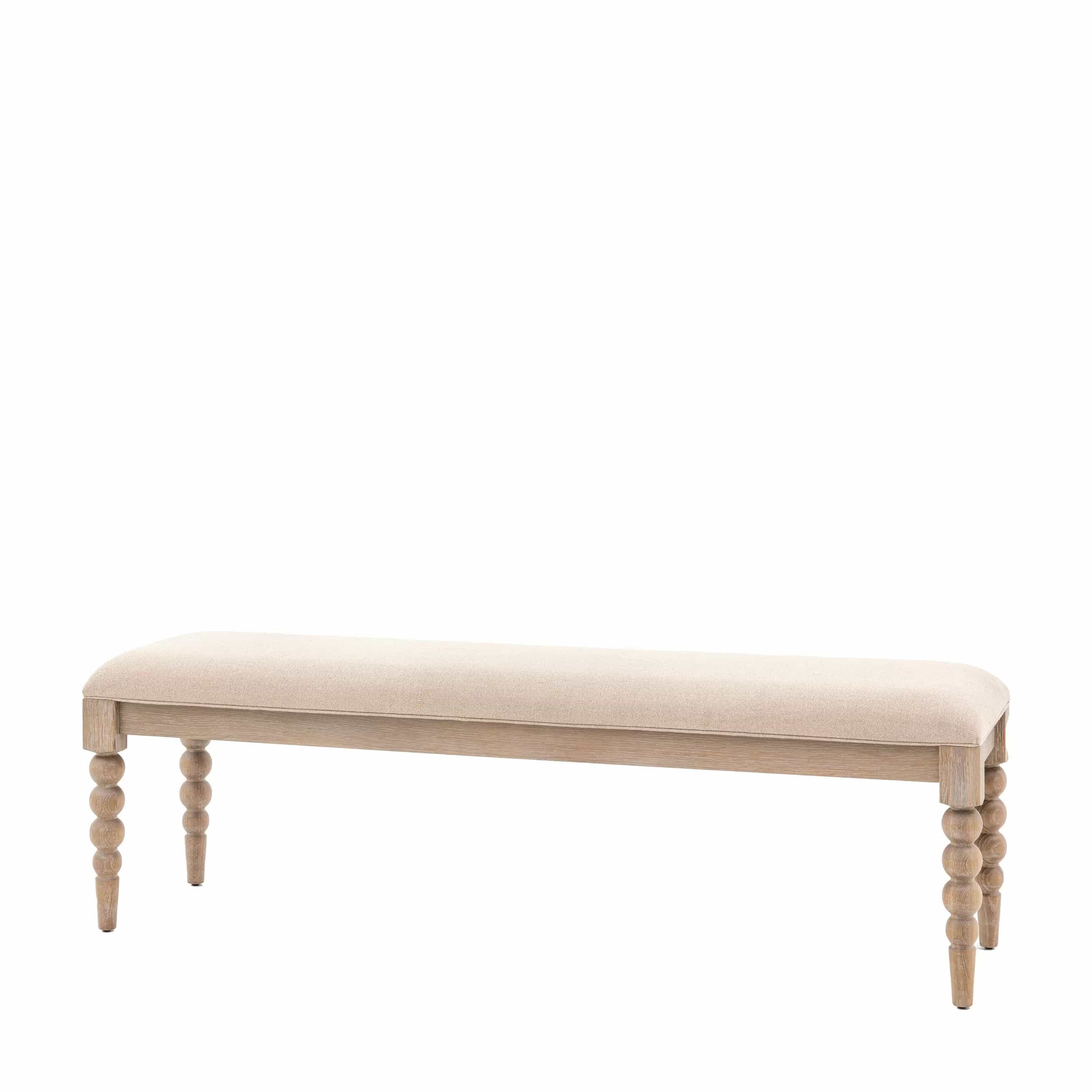 The Mitcham Dining Bench is a stunning addition to any dining room, with its eye-catching hand-crafted bobbing detail on the legs. Made from oak with a subtle lime wash finish, this bench exudes a soft and mellow charm. The upholstered seat in biscuit coloured fabric adds a touch of elegance and comfort. And the best part? This product is available for fast delivery, so you can enjoy it in your home in no time.