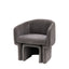 Inspired by retro design this armchair is a stand out addition to any room. Upholstered in grey the smooth curved back narrows down to a curved back base with double stepped feature at the front, the vintage influence is clear, making it the perfect fit for both modern and eclectic inspired interiors. Also available in other colour options.