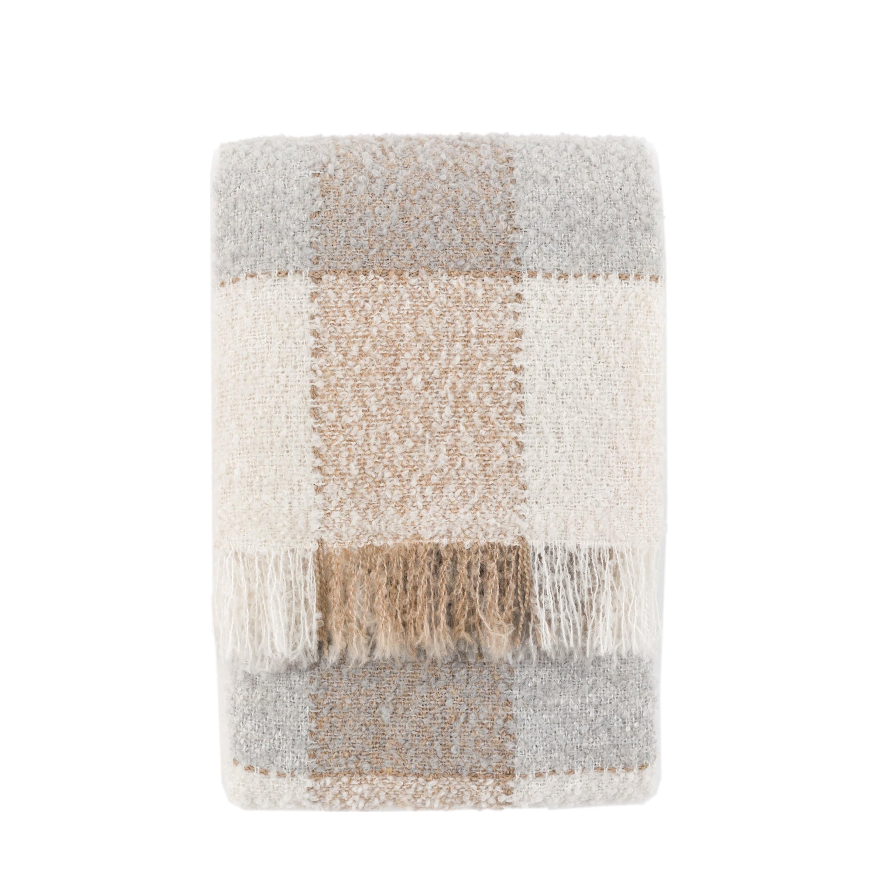 In a natural and brown toned check pattern, with stitch detailing and soft boucle texture, this is a super soft cosy throw, perfect for chilly autumn days.