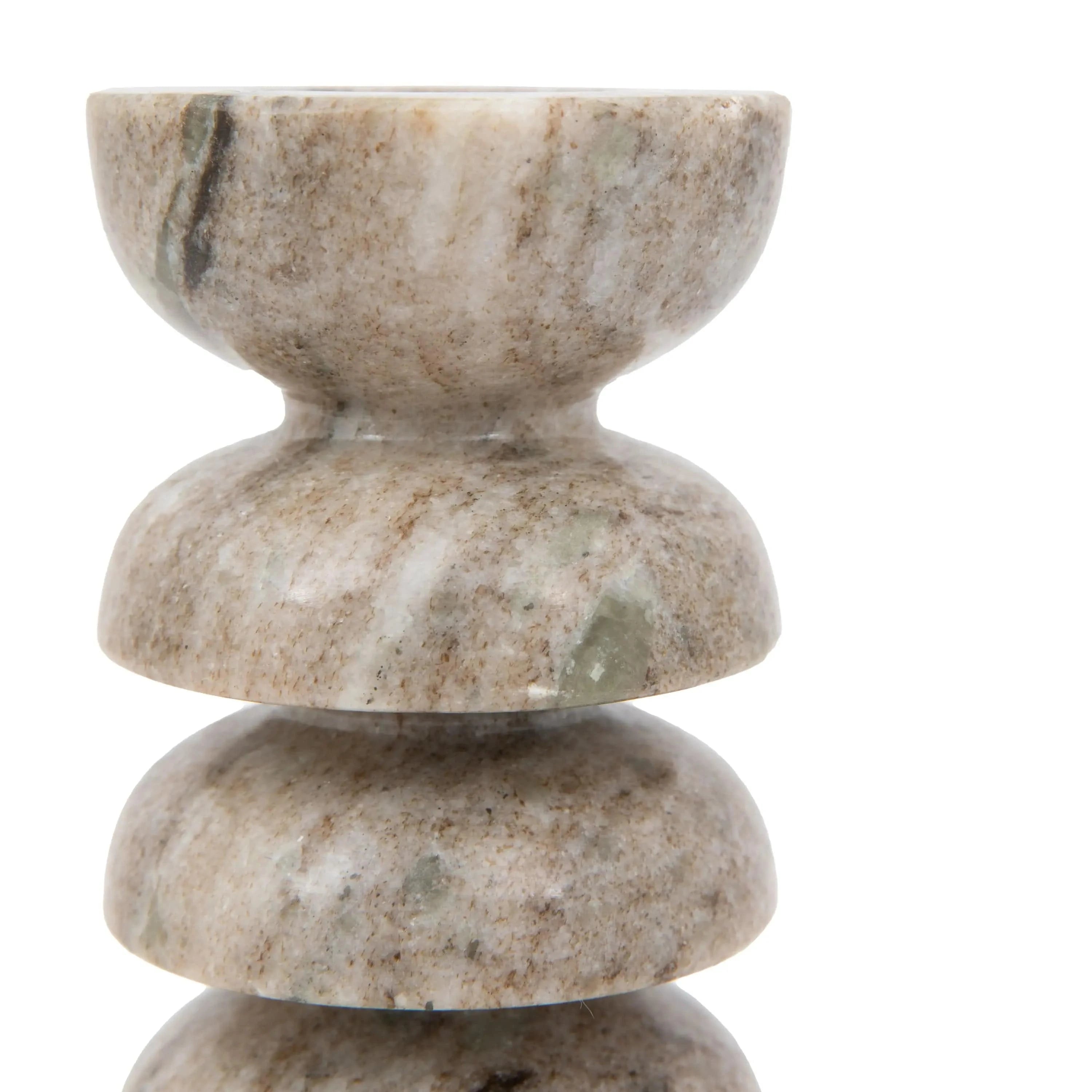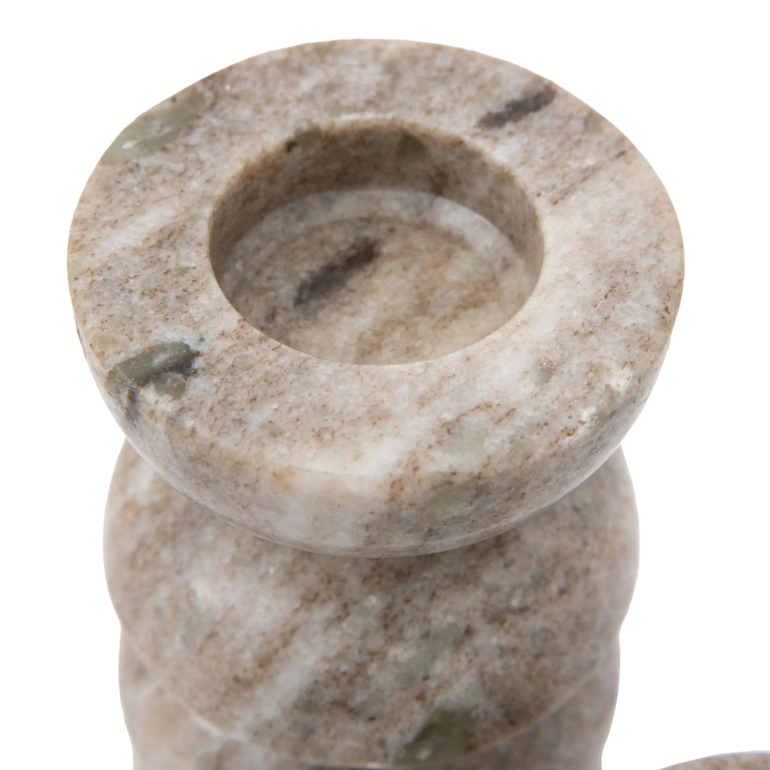 Introducing the Azuaga Marble Candlestick Sandstone Set of 2, a luxurious addition to any home. Made from solid sand toned marble, these candlesticks boast a contemporary design that will elevate any space. The sculptural forms showcase the natural beauty of the marble, making a bold statement in any room.