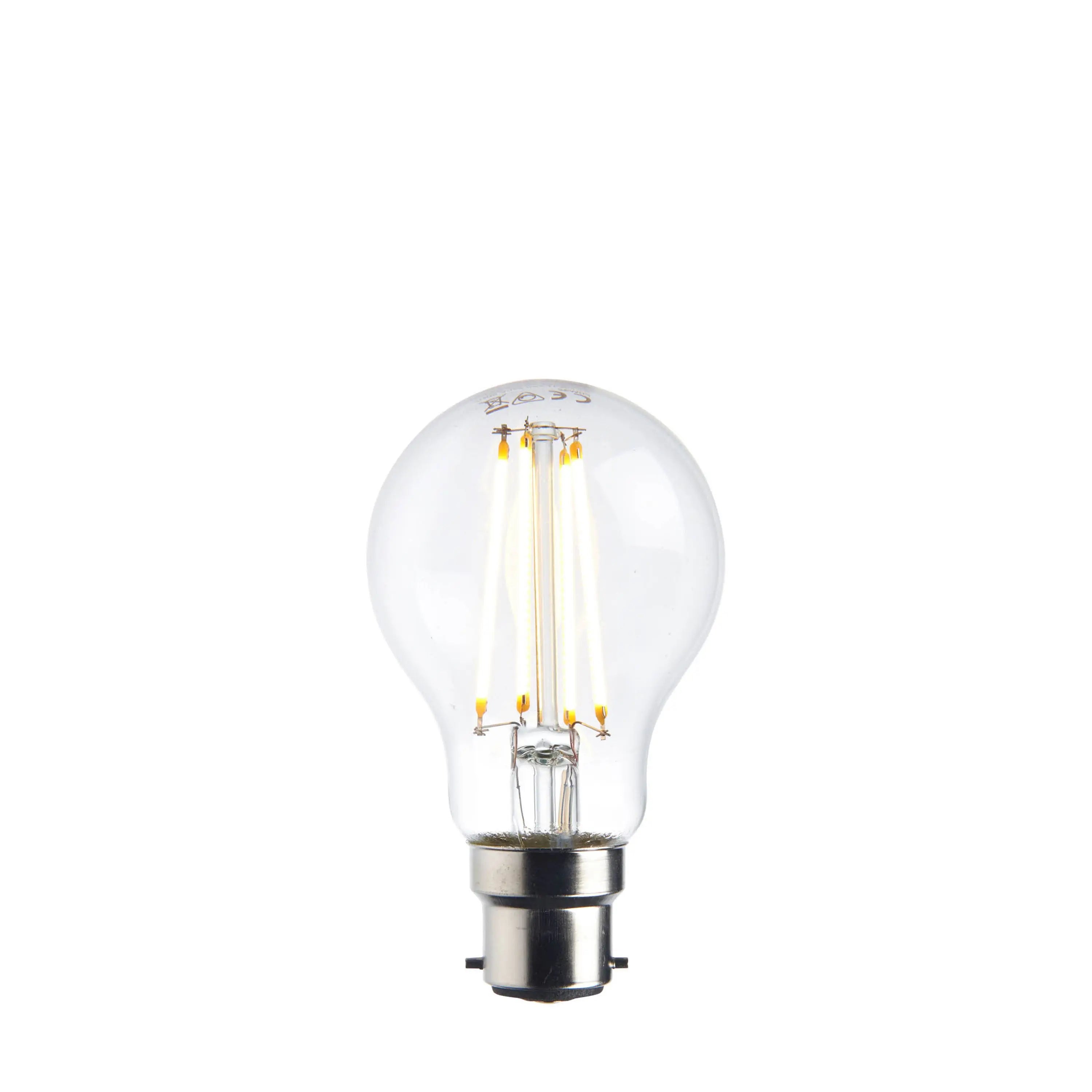 Bayonet filament lamps are the latest in LED technology. Designed to look like the original incandescent lamps, whilst offering all the advantages of LED such as low running costs. These are the ideal lamp replacements for all decorative light fittings. This is a dimmable 8W lamp that has a 2700K colour temperature.