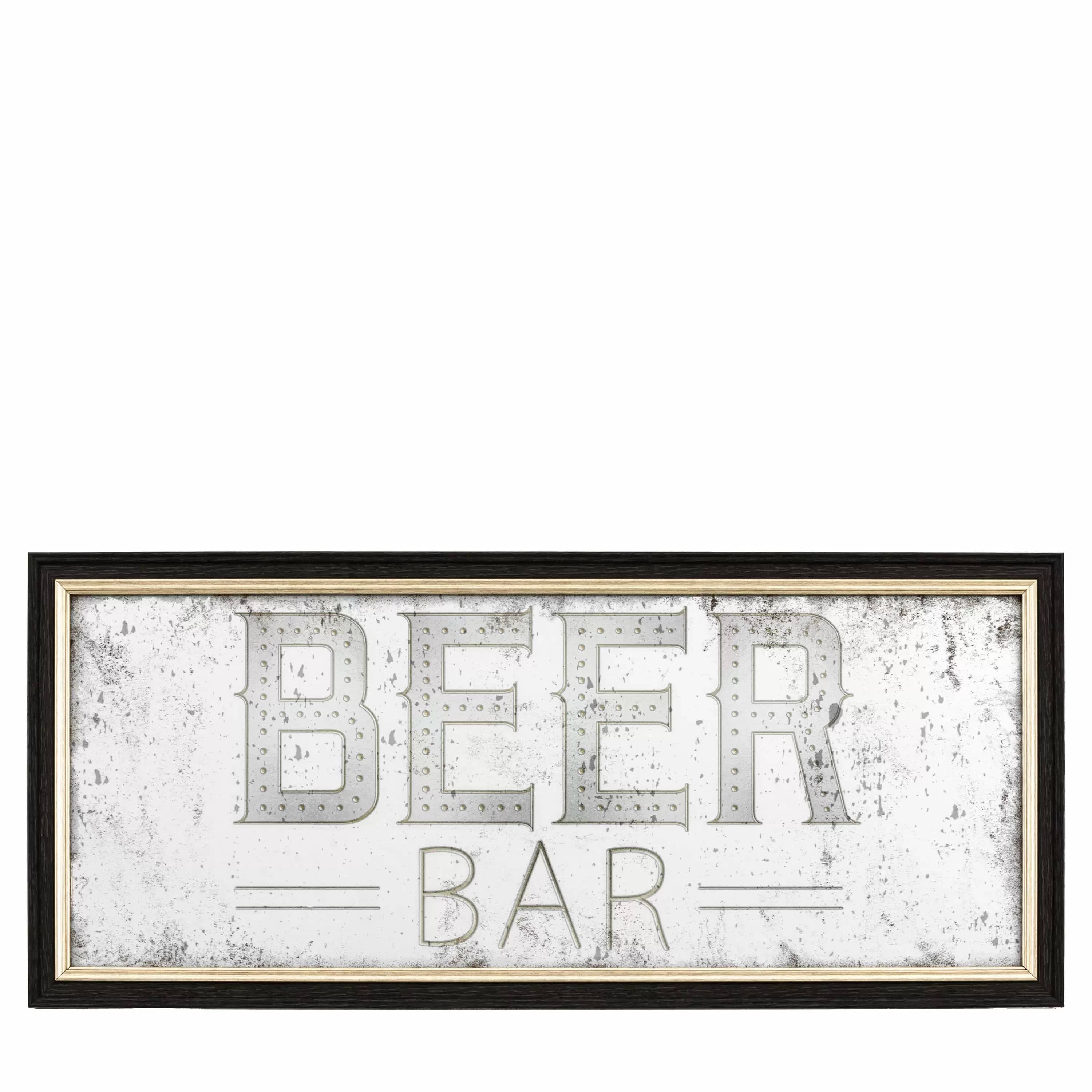 Introducing the Chicopee Mirror, a vintage inspired piece that exudes nostalgic charm. This mirror features a distressed mirrored background with a retro style font and a sleek black frame, making it the perfect addition to any bar or kitchen area.