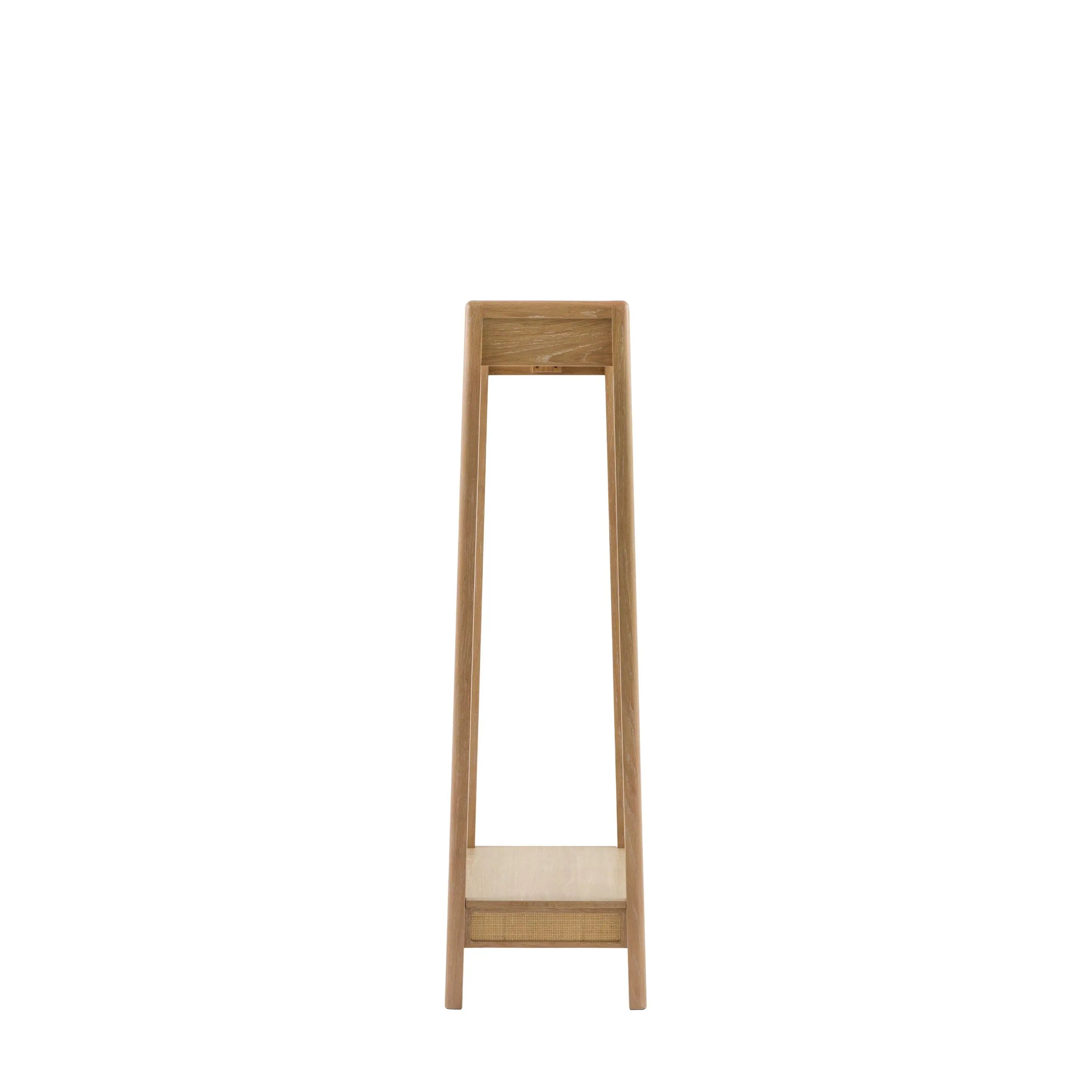 Bring a touch of rustic charm with this beautifully crafted open wardrobe; blending oak solids, veneers, and solid rubberwood timbers for durability and warmth. The standout feature being the natural hand-woven rattan, adding texture and an artisanal feel. Finished in a soft lime-washed tone, the collection has a relaxed, lived-in character. Gently curved tops lend a sense of softness, while bronzed metal handles add a subtle vintage touch. Perfect for creating a calming, timeless bedroom space with natural beauty at its heart.