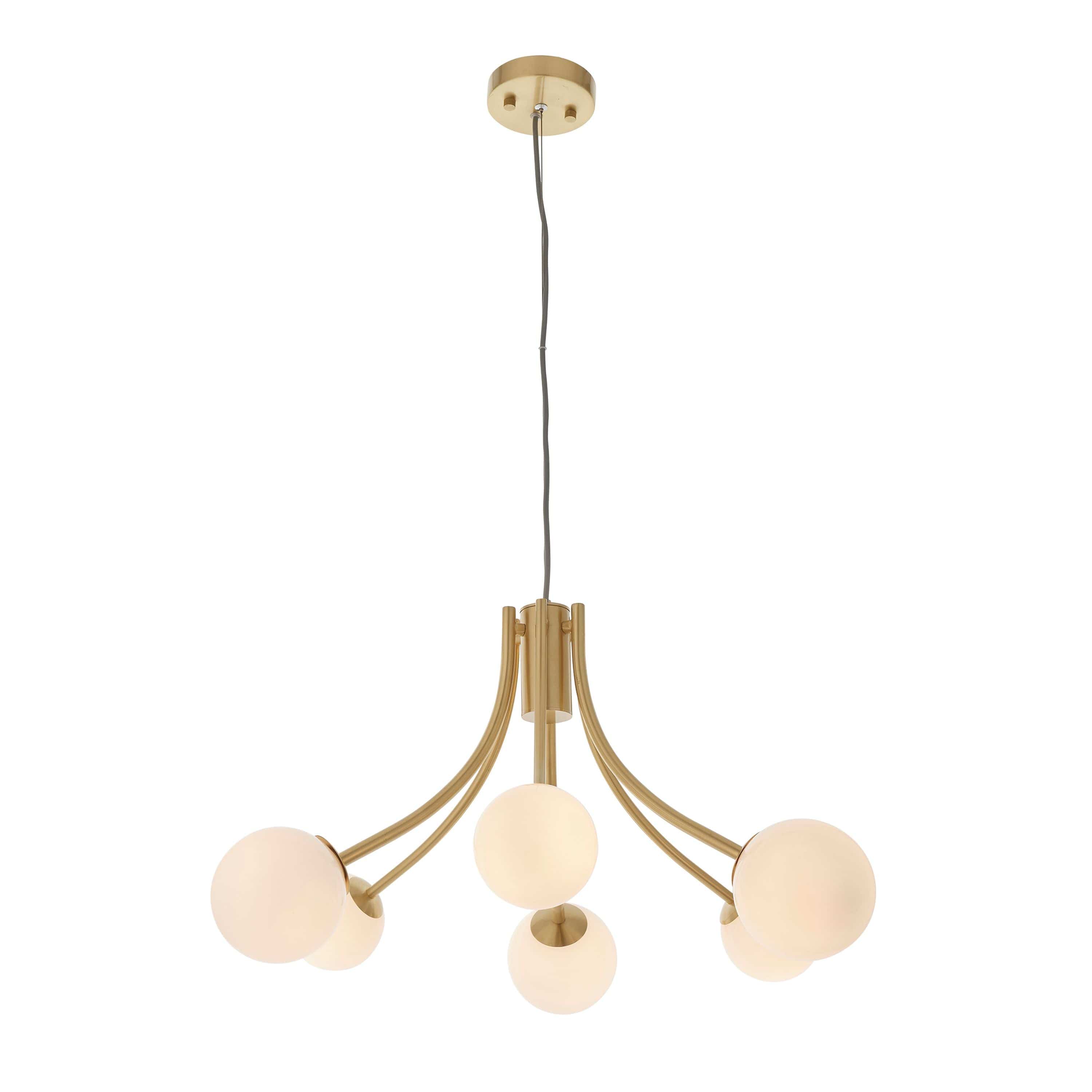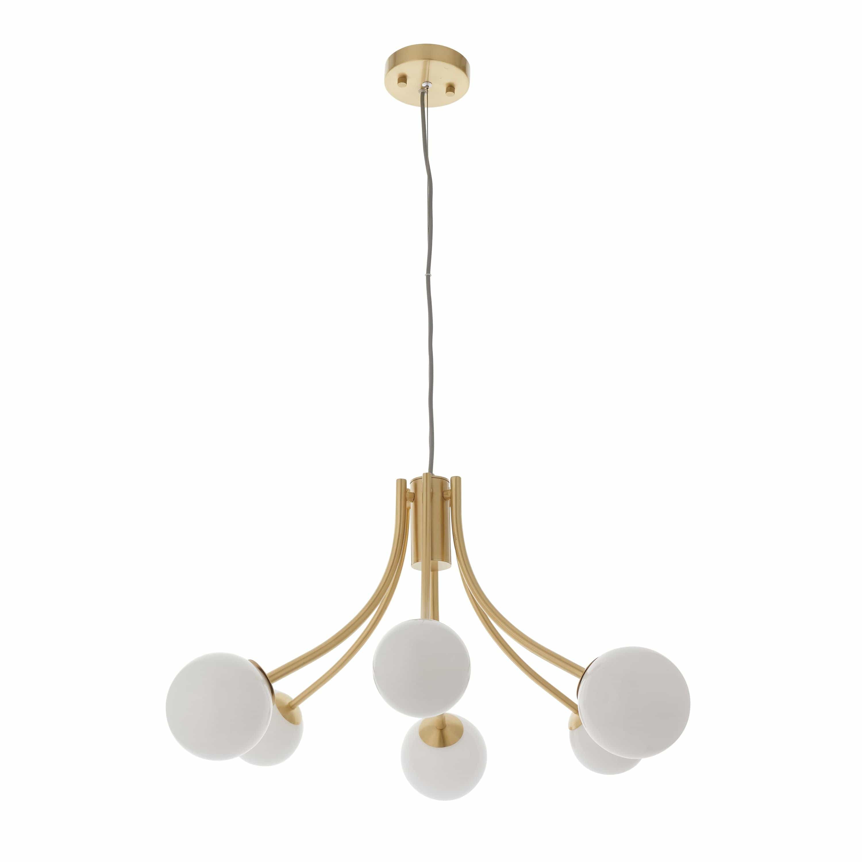Introducing the Batch 6 Pendant Light, a stunning addition to any interior space. This pendant light features a sleek satin brushed gold effect plate and glossy white glass, creating a luxurious and modern look. With its dimmable LED lights, this light is not only stylish but also energy-efficient.