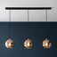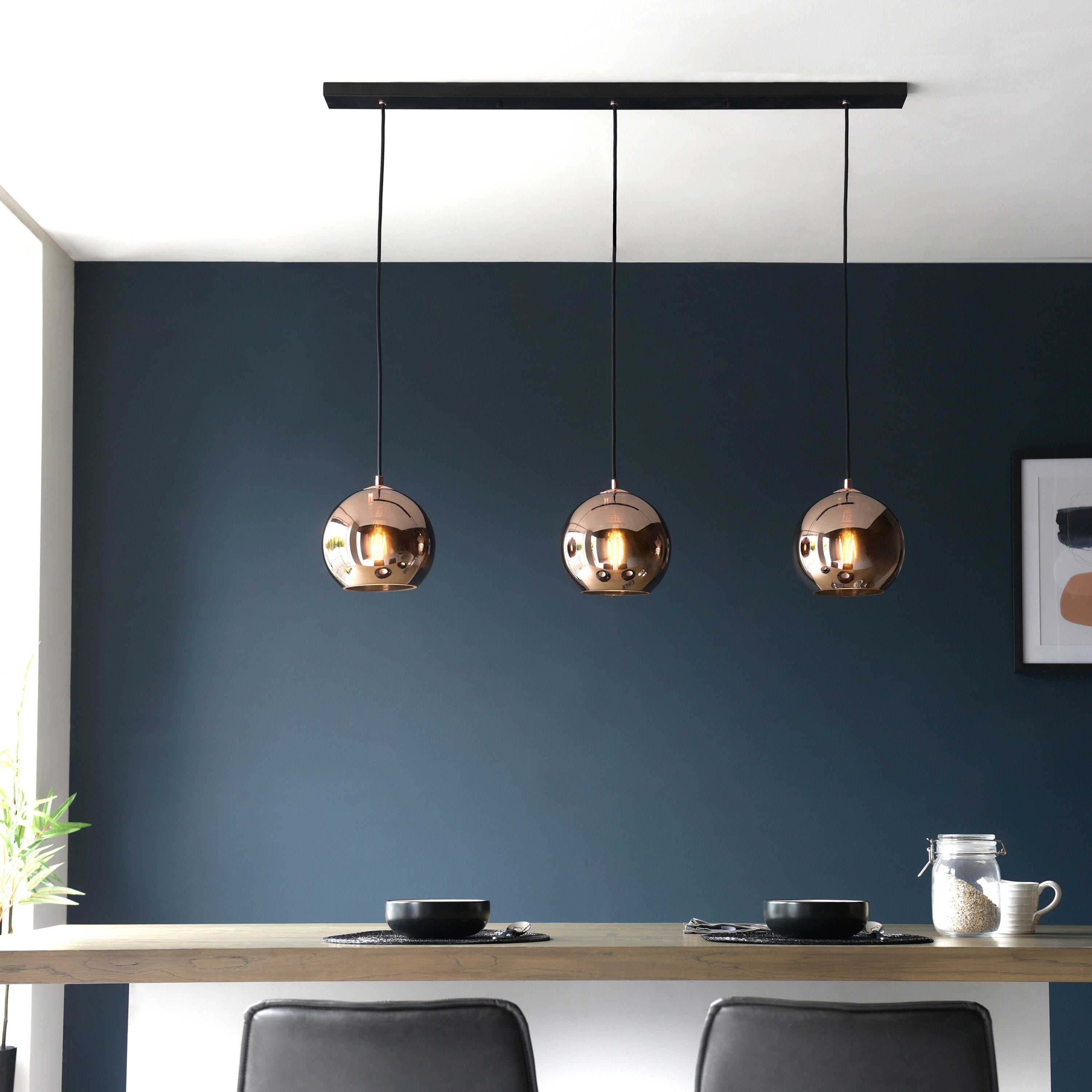 Introducing the Boli Pendant Light, a must-have addition to any modern home. This stunning light features effortlessly cool copper mirrored glass shades suspended from sleek matt black metalwork, creating a contemporary and stylish look. Perfect for hanging above breakfast bars or dining tables, this linear pendant will add a touch of luxury to any room.