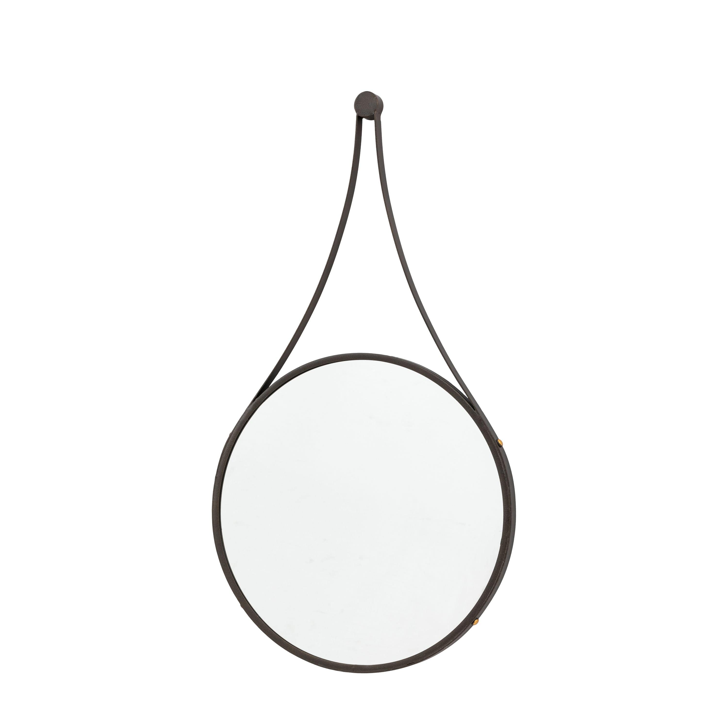 Introducing the Bedworth Round Mirror - Large, a stylish addition to any wall. This unique mirror features a metal surround and a 'hanging strap' for a slightly industrial touch. Want a smaller size? We've got you covered.