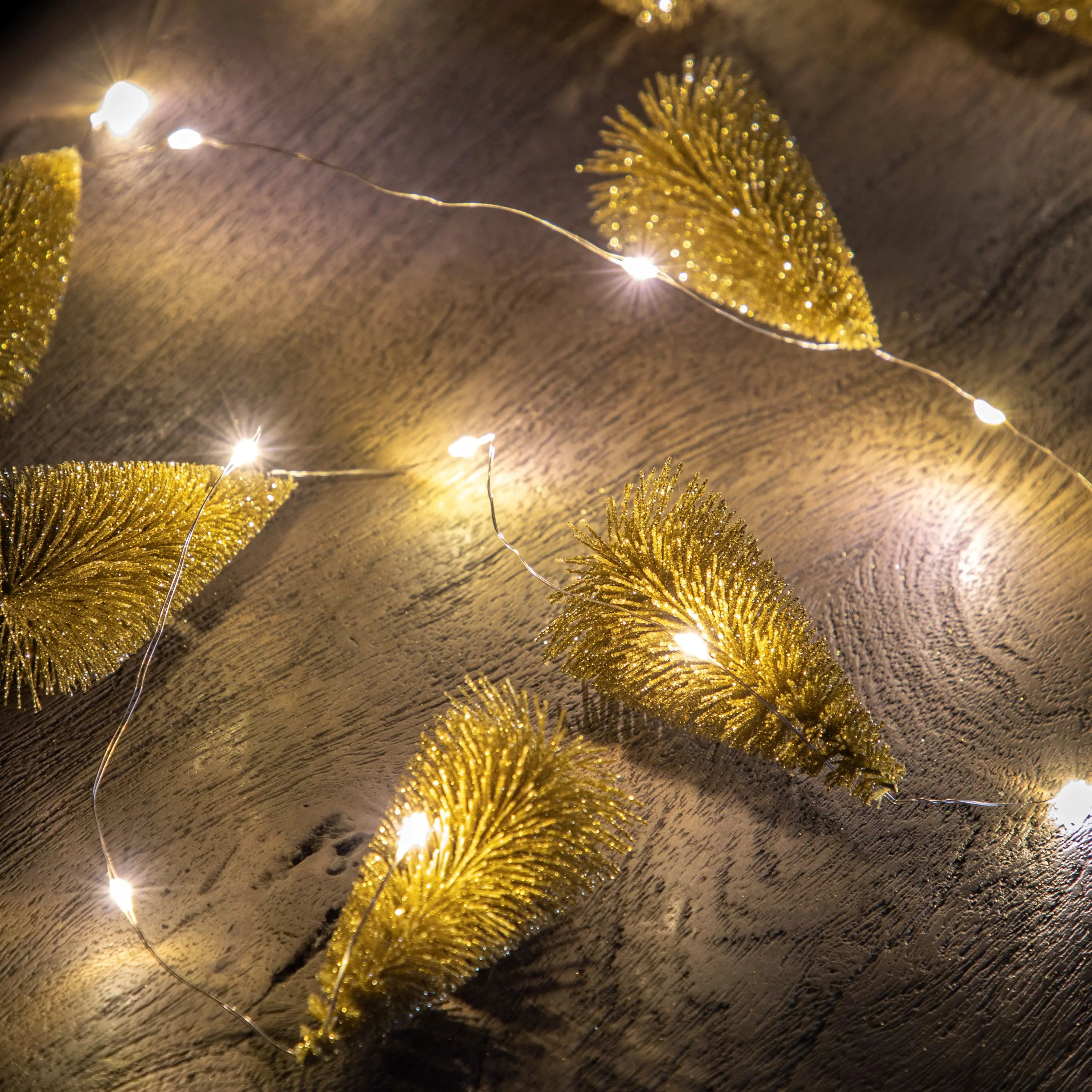 This brush tree garland has 15 LED lights that really sparkle when lit as the light bounces off the glitter.