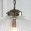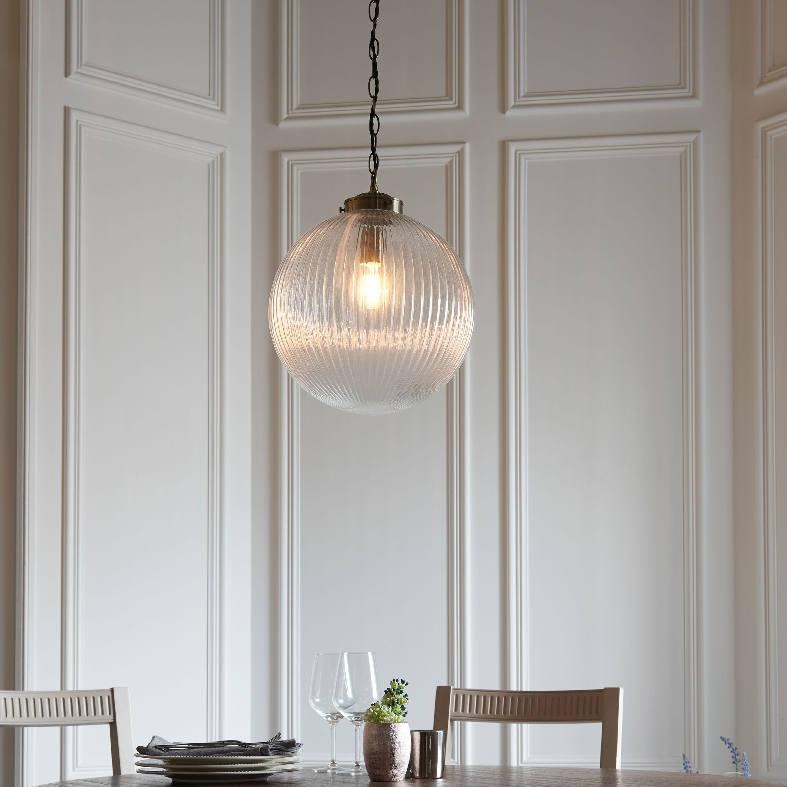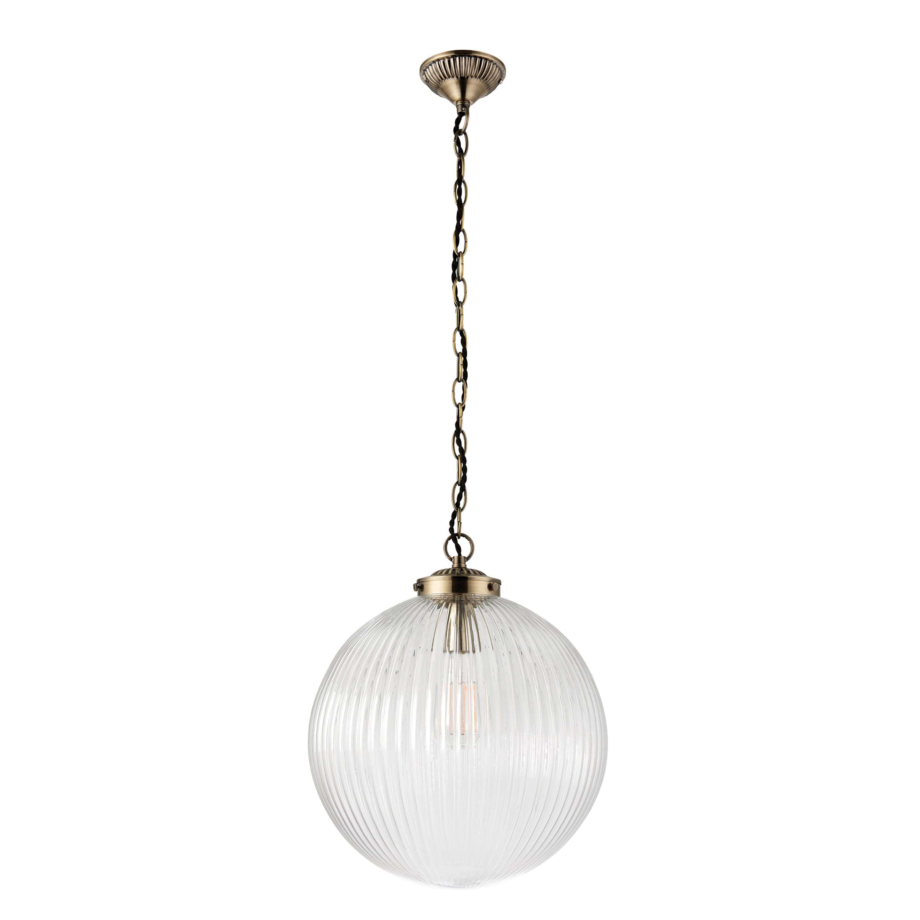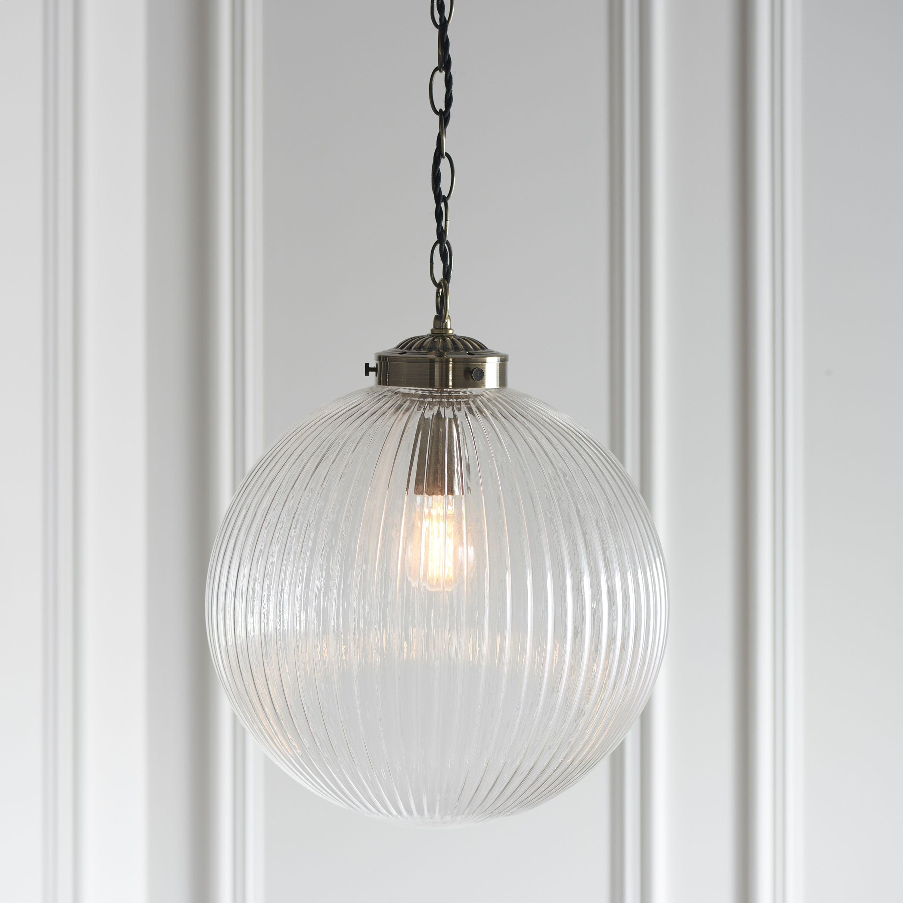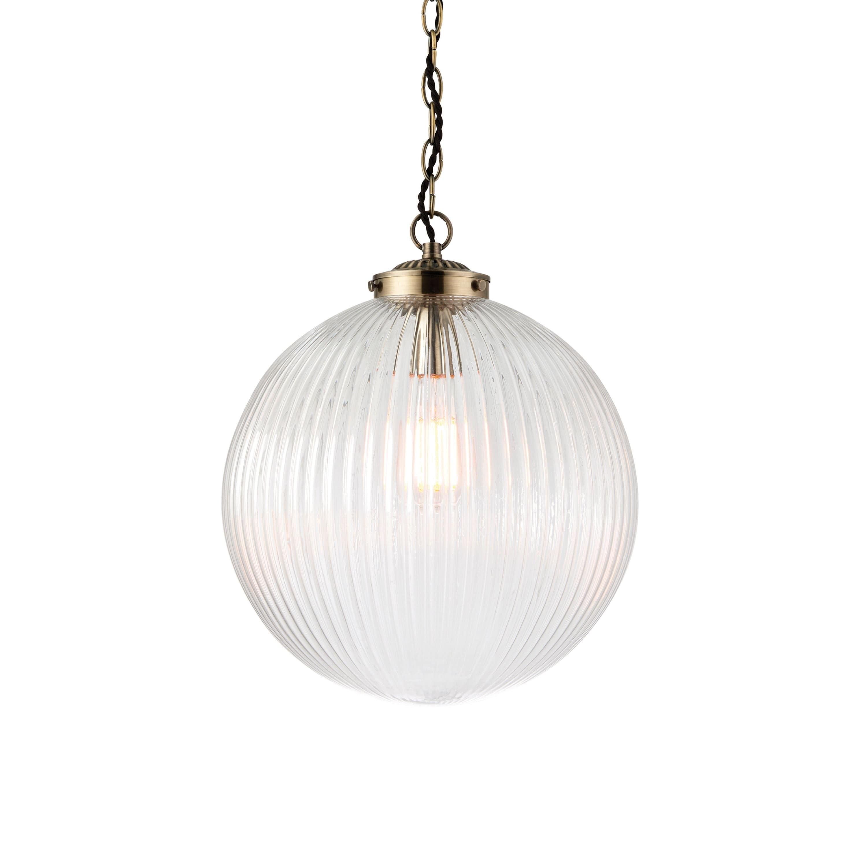 Belle Pendant Light Clear Glass Large is the perfect addition to any interior space. This stunning ceiling pendant features a ribbed round glass shade hanging from a decorative chain finished in antique brass. Not only is it visually appealing, but it is also compatible with LED lamps and can be dimmed to create the perfect ambiance. Available in a choice of sizes, this pendant light is versatile and can fit into any room. Made with high-quality materials, the glass and steel construction ensures durability and longevity. Plus, with fast delivery and free shipping within the UK, you can have this luxurious piece in your home in no time. Elevate your space with the Belle Pendant Light Clear Glass Large from House of Isabella.