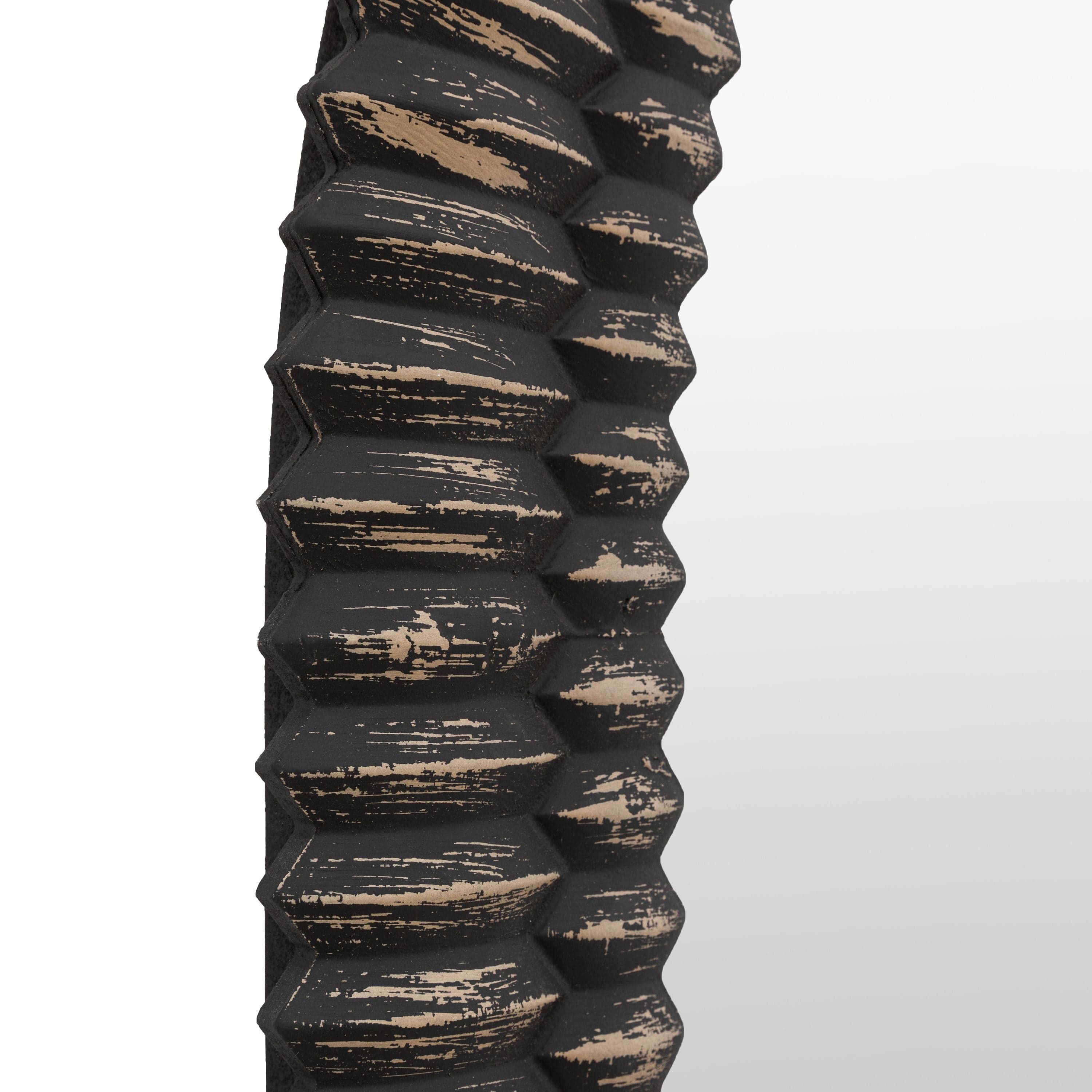 Introducing the Caffs Arch Overmantle Black Wash from House of Isabella - the perfect addition to elevate your space. This semi-circle overmantel mirror features a stunning 3D wooden etching style frame, adding a unique and textured dimension to any room. The rich wood finish highlights the intricate craftsmanship, making it a standout piece above your mantle or as a focal point in any space.