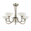 The Cagney 3 light semi flush is finished in antique brass effect with white painted glass shades with faint line detailing. suitable for use with LED lamps and dimmable; matching 5 light semi flush and wall light options and satin chrome finish also available