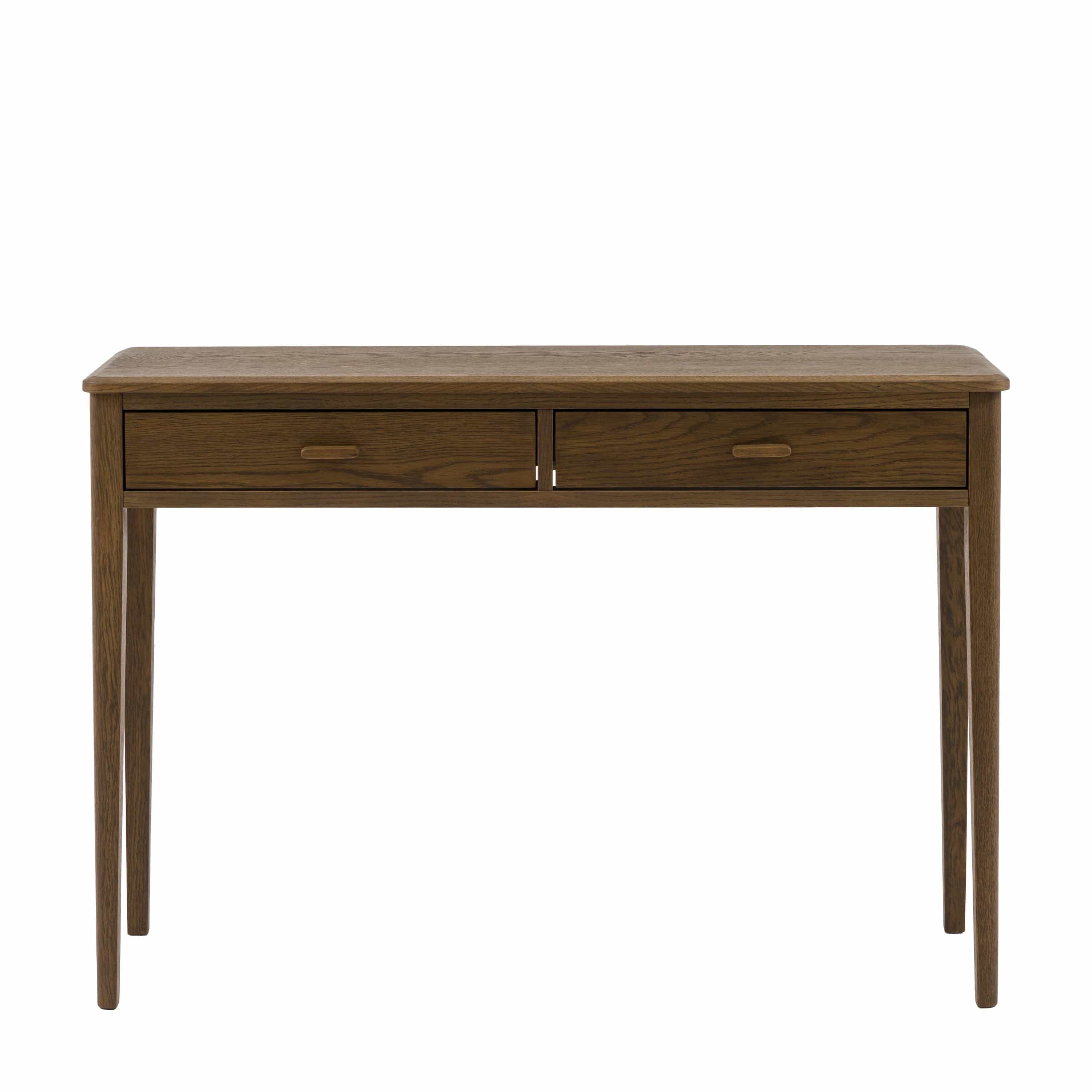 Welcome natural elegance into your home with this console table. Crafted from rich, dark wood with a beautiful grain, the slender design makes this console table perfect for hallways, living rooms and home offices. Two convenient drawers offer easy storage while the slim wooden handles add a touch of style.