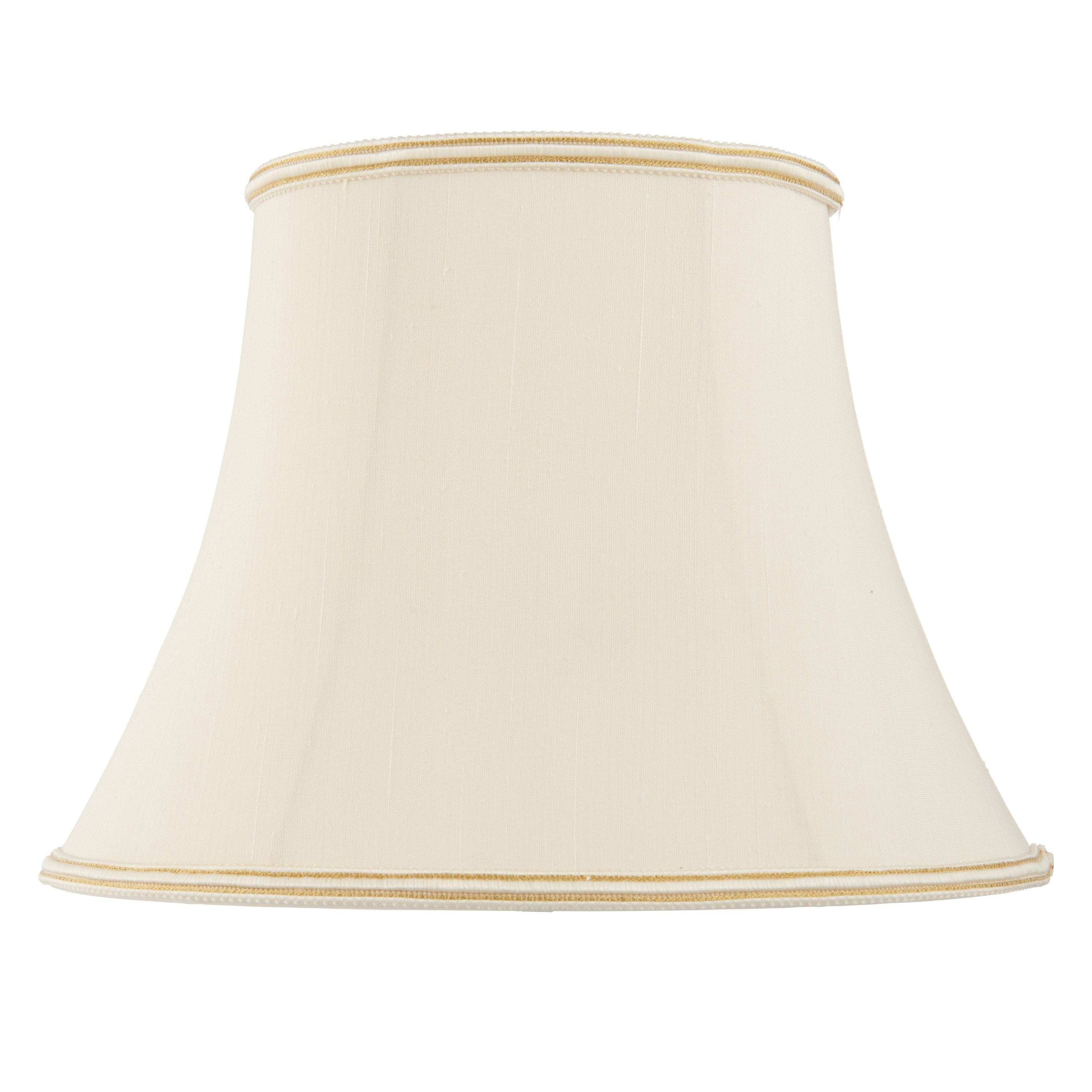 The 12 inch Celia handmade lamp shade is a balloon lined bowed oval in a cream fabric with a subtle woven trim on the top and bottom edges. Available in a choice of sizes