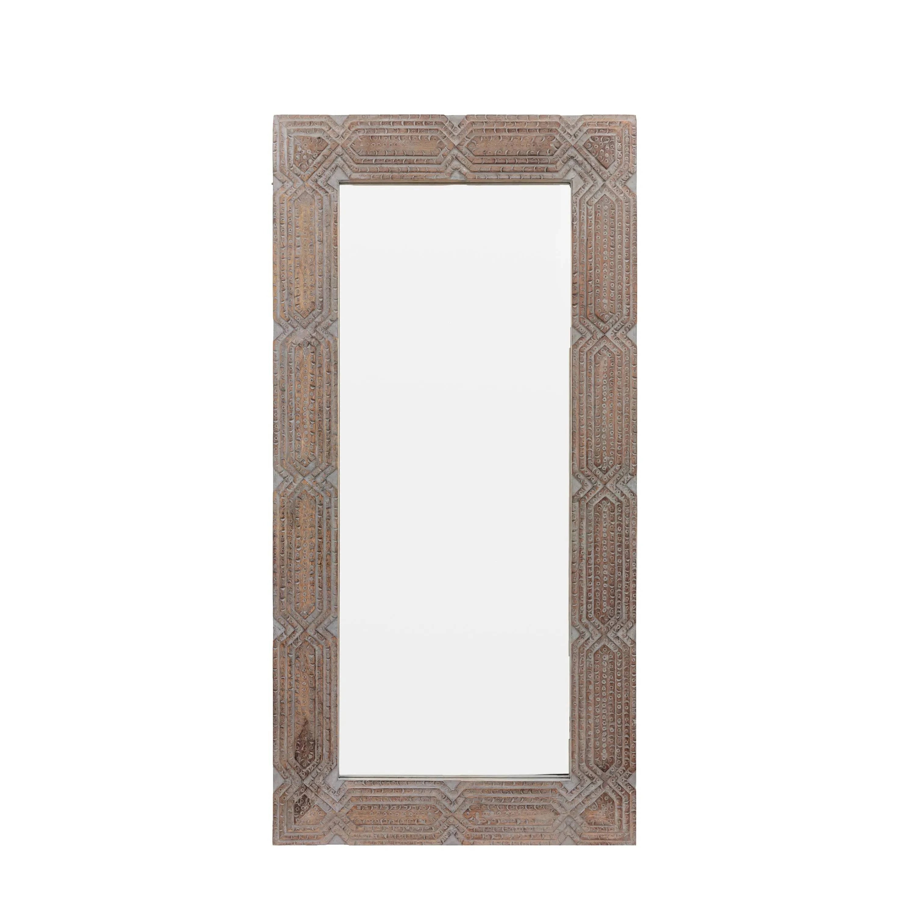 Large leaner mirror with a beautifully decorative wooden frame with a washed finish.