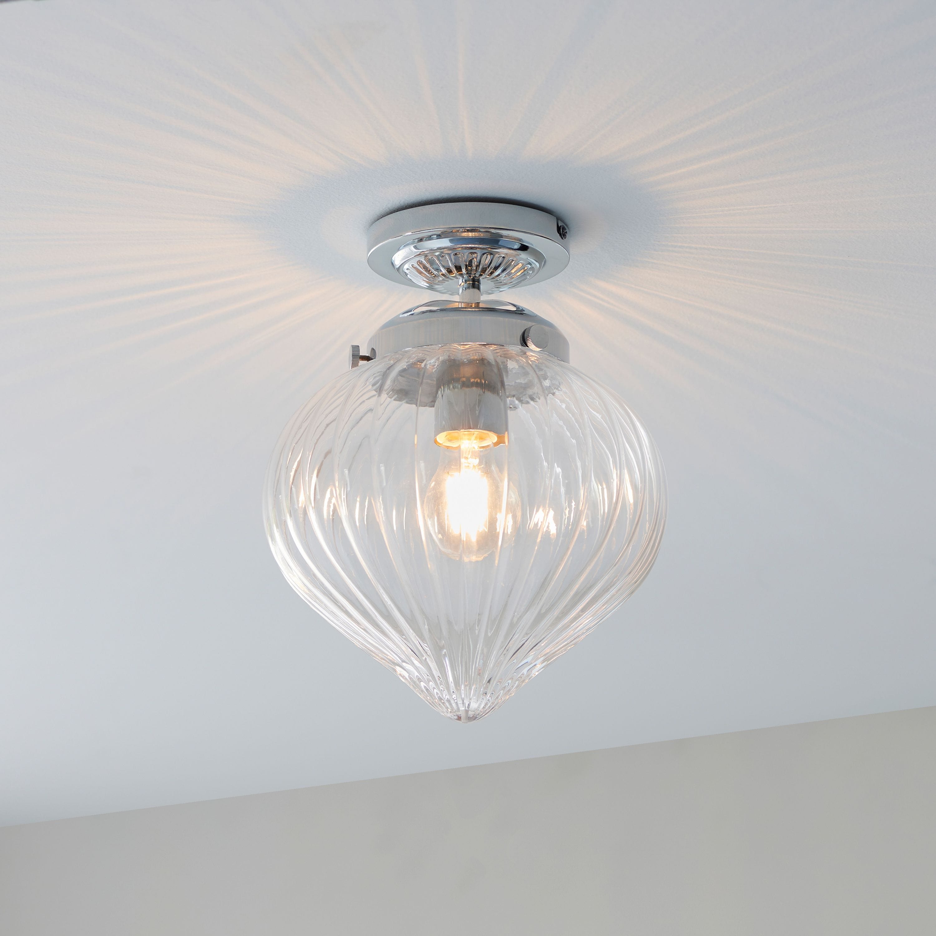 Introducing the Blindcrake Bathroom 1 Ceiling Light, available now at House of Isabella. This modern and stylish light features chrome plated metalwork and beautiful clear rippled glass detail, perfect for adding a touch of elegance to any bathroom. And with its IP44 rating, it is safe for use in the bathroom. But what sets this light apart is its fast delivery, ensuring that you can enjoy your new light in no time.