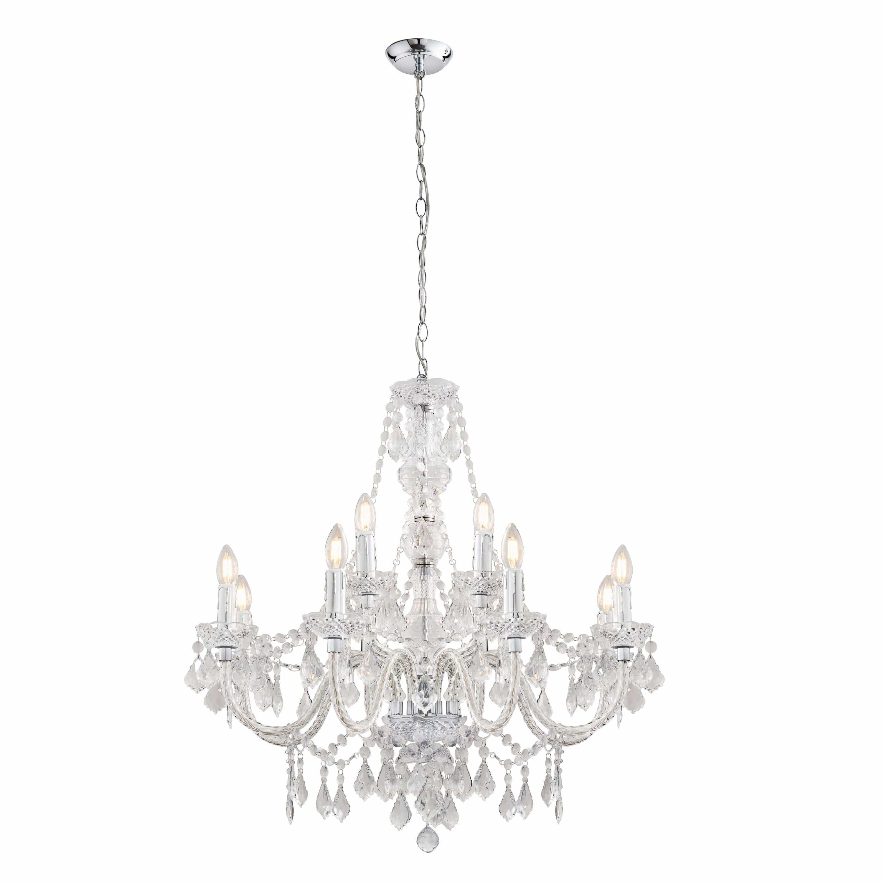 An 8 light chandelier with clear acrylic beading, facets and droplets. Comes with a fully adjustable chain to extend the drop of the light up to a maximum 1.8m. Available in a choice of sizes and also comes in a black finish