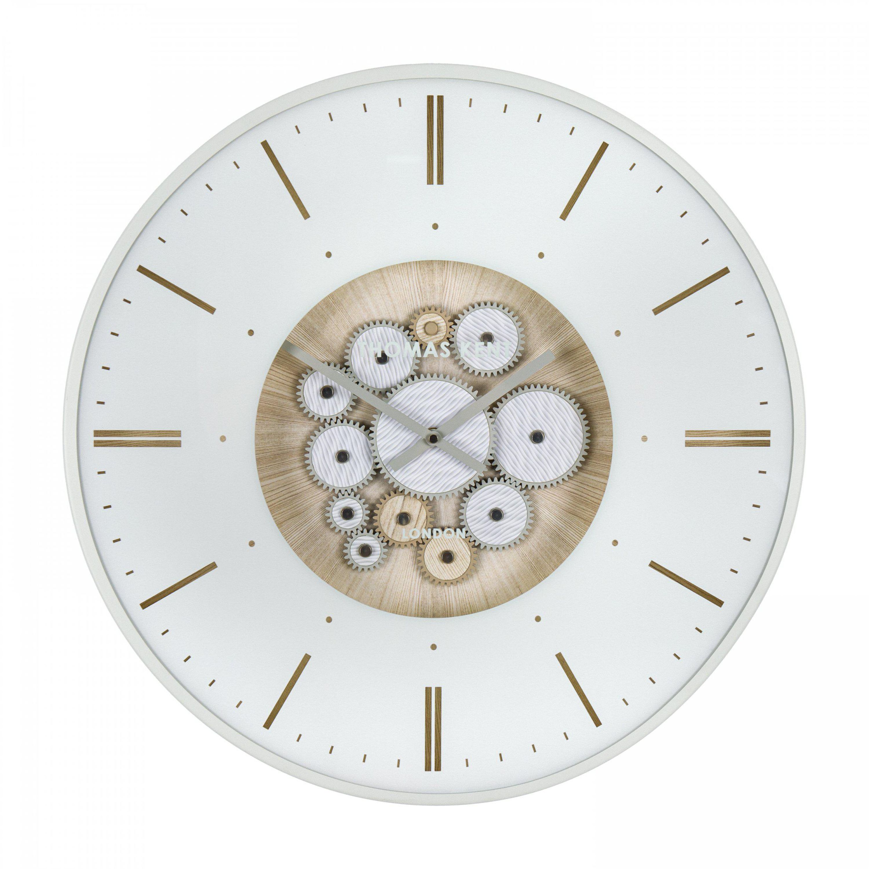 The feeling of industry sits at the heart of this contemporary large wall clock design. An assortment of decorative cogs move seamlessly together to create a dramatic exposed mechanical effect. A contrasting hammered metal and worn stone design bring the wheels to life. Arranged on a bronze canvas dial, a brown antique frame encases the feature wall statement. The modern numerals reveal the bronze background canvas.