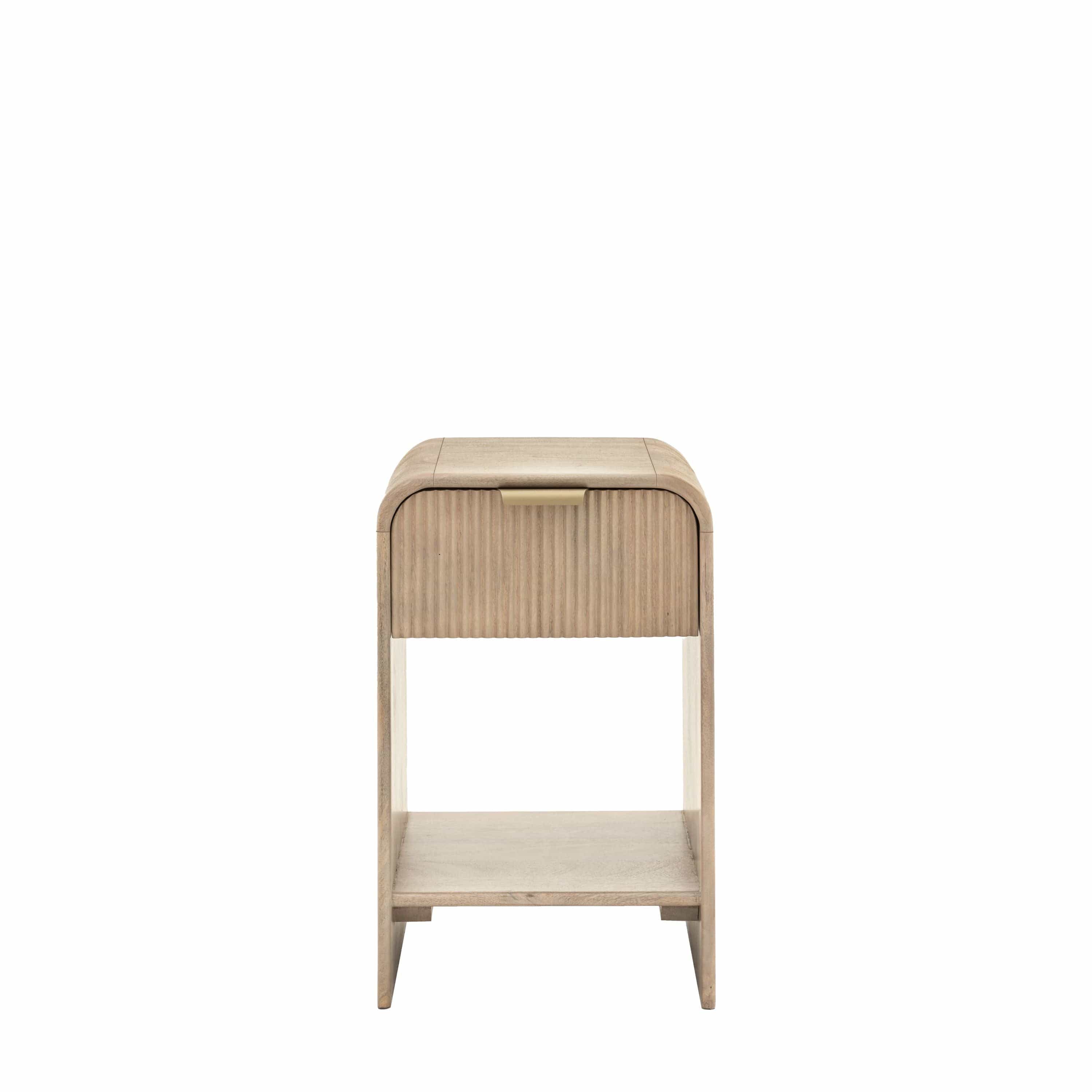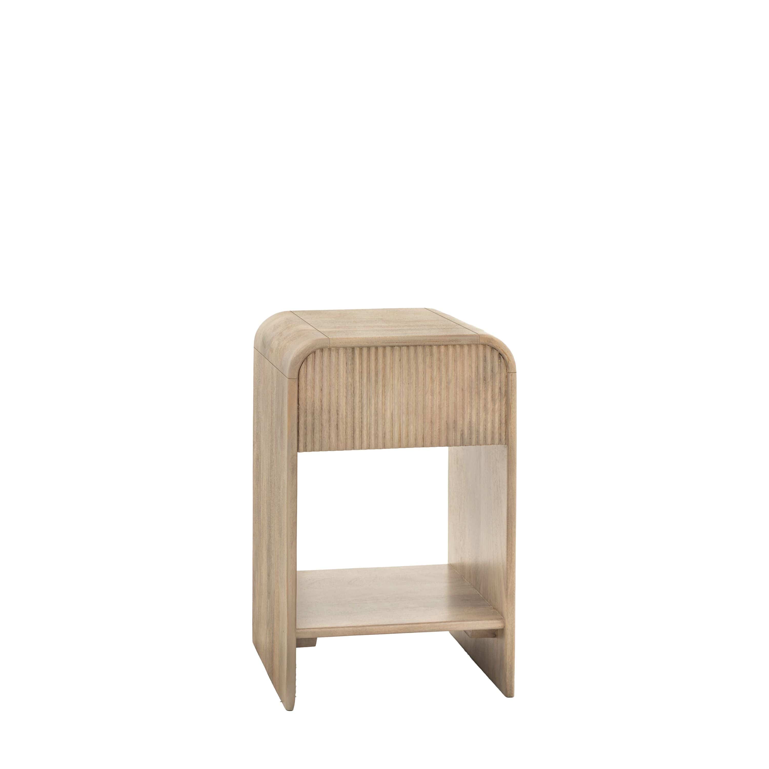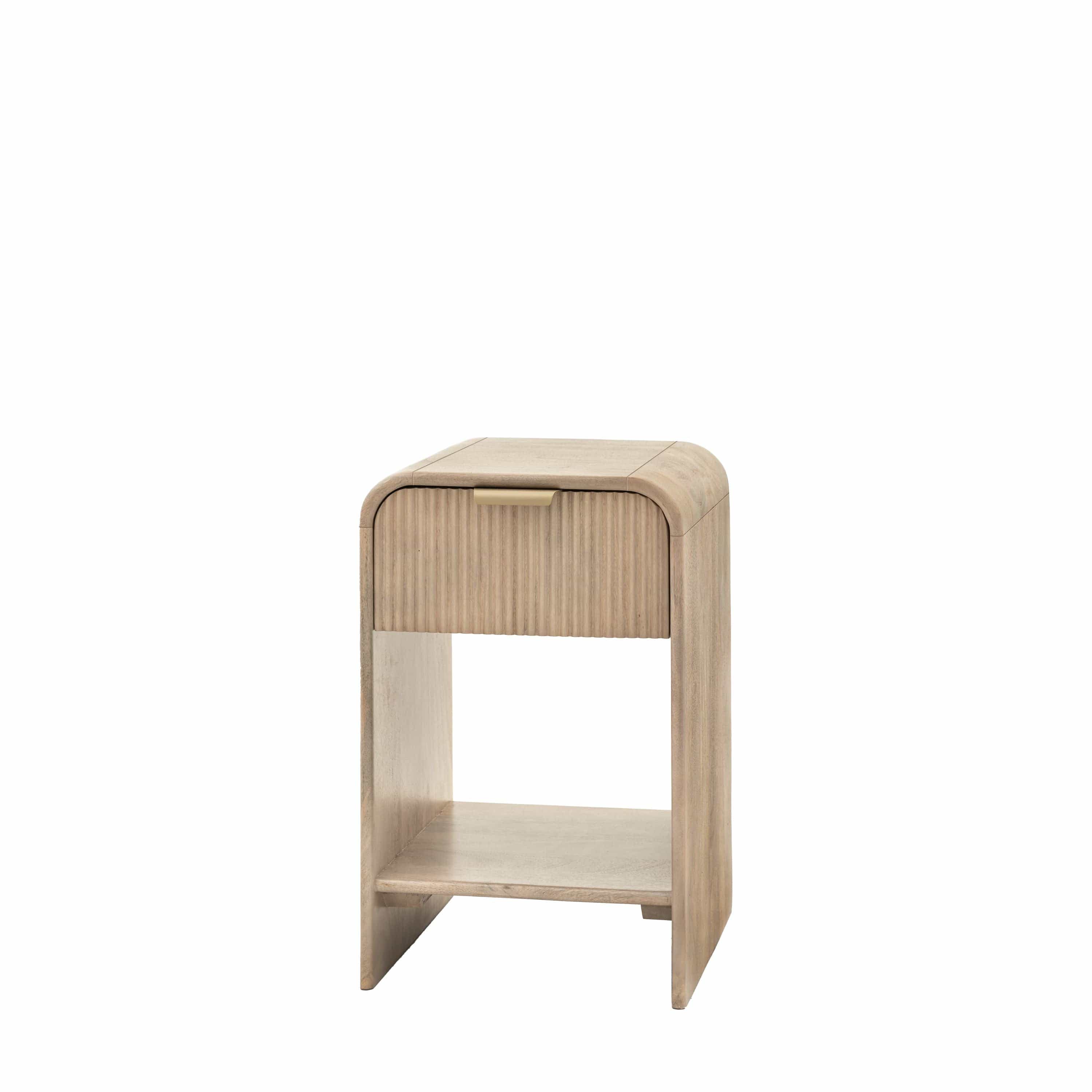 Introducing the Coleman 1 Drawer Bedside Small, the perfect addition to any bedroom. This sleek bedside table features a curved design and fluted drawer, adding a touch of modern elegance to your space. Crafted from high-quality wood, it offers both style and functionality.