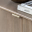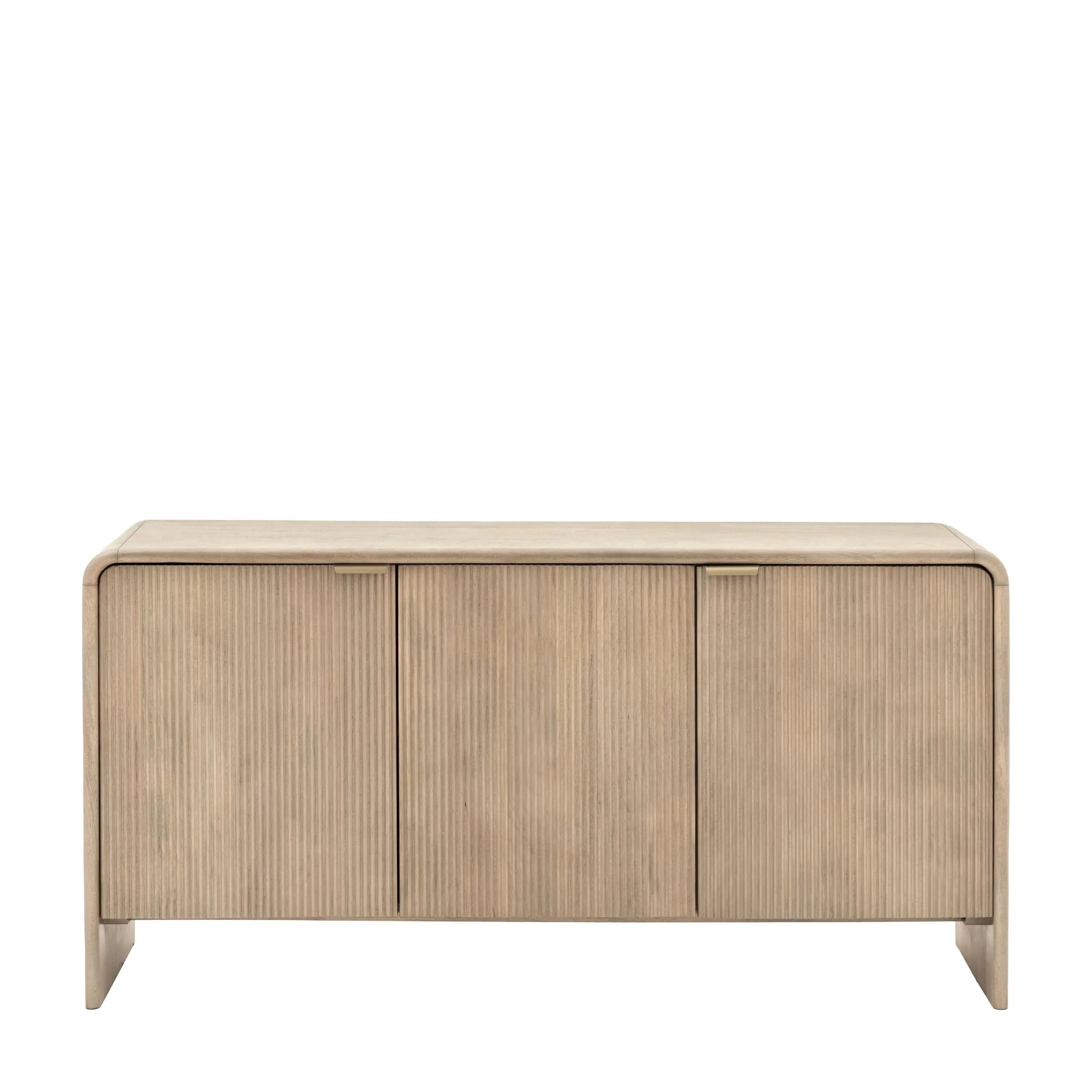 This 3 door sideboard is designed to bring both style and storage to any dining room or living space. With a beautifully curved top and signature fluted doors, this piece provides Gemserous storage space behind its three doors. Whether used for dinnerware, media storage, or other household items, the sideboard's refined design complements a wide range of interior styles.